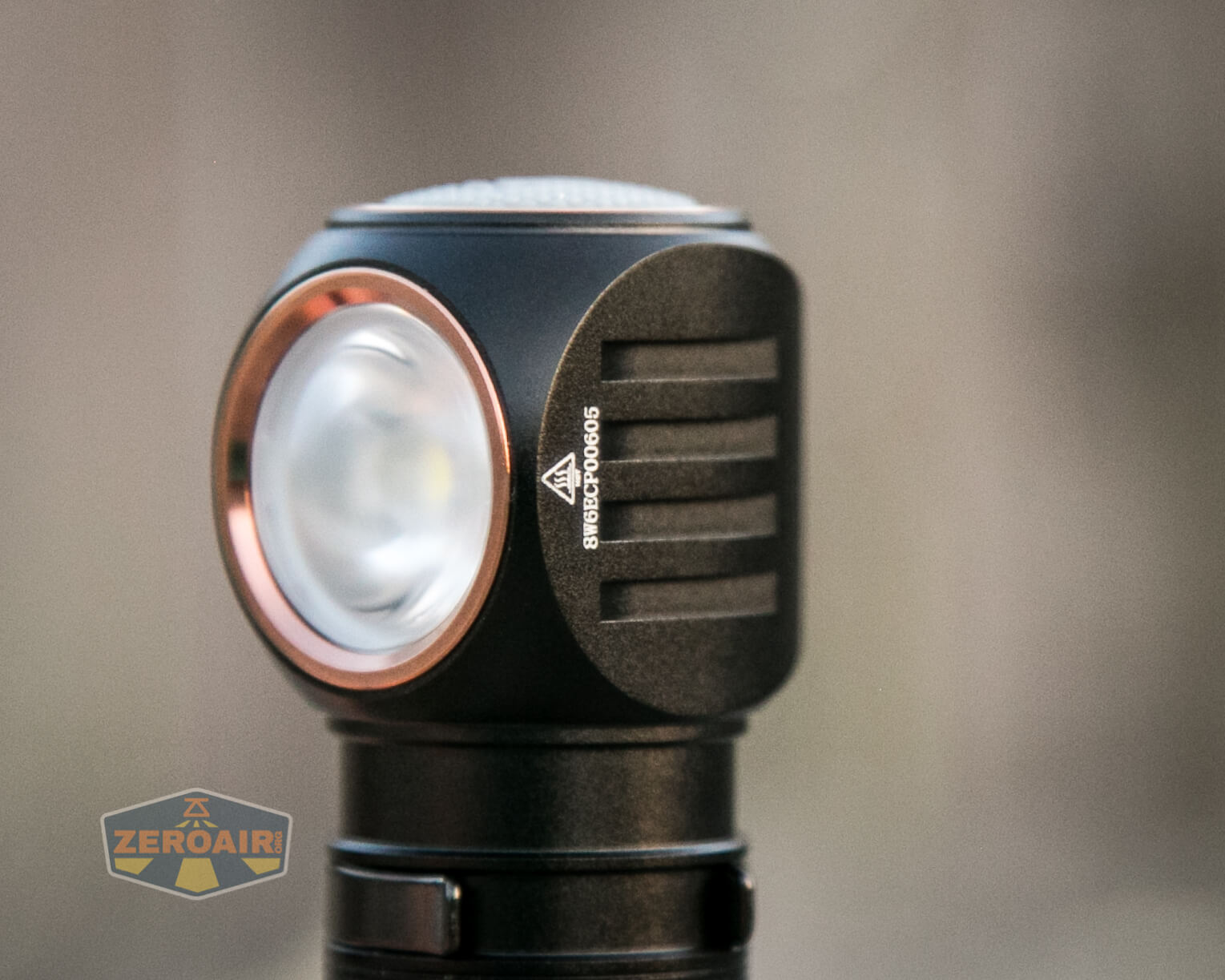 The emitter (emitters actually) are behind this optic, which you can see below. I don’t see a way to get the bezel off, and so I’m unsure about emtiter swaps on this headlamp.