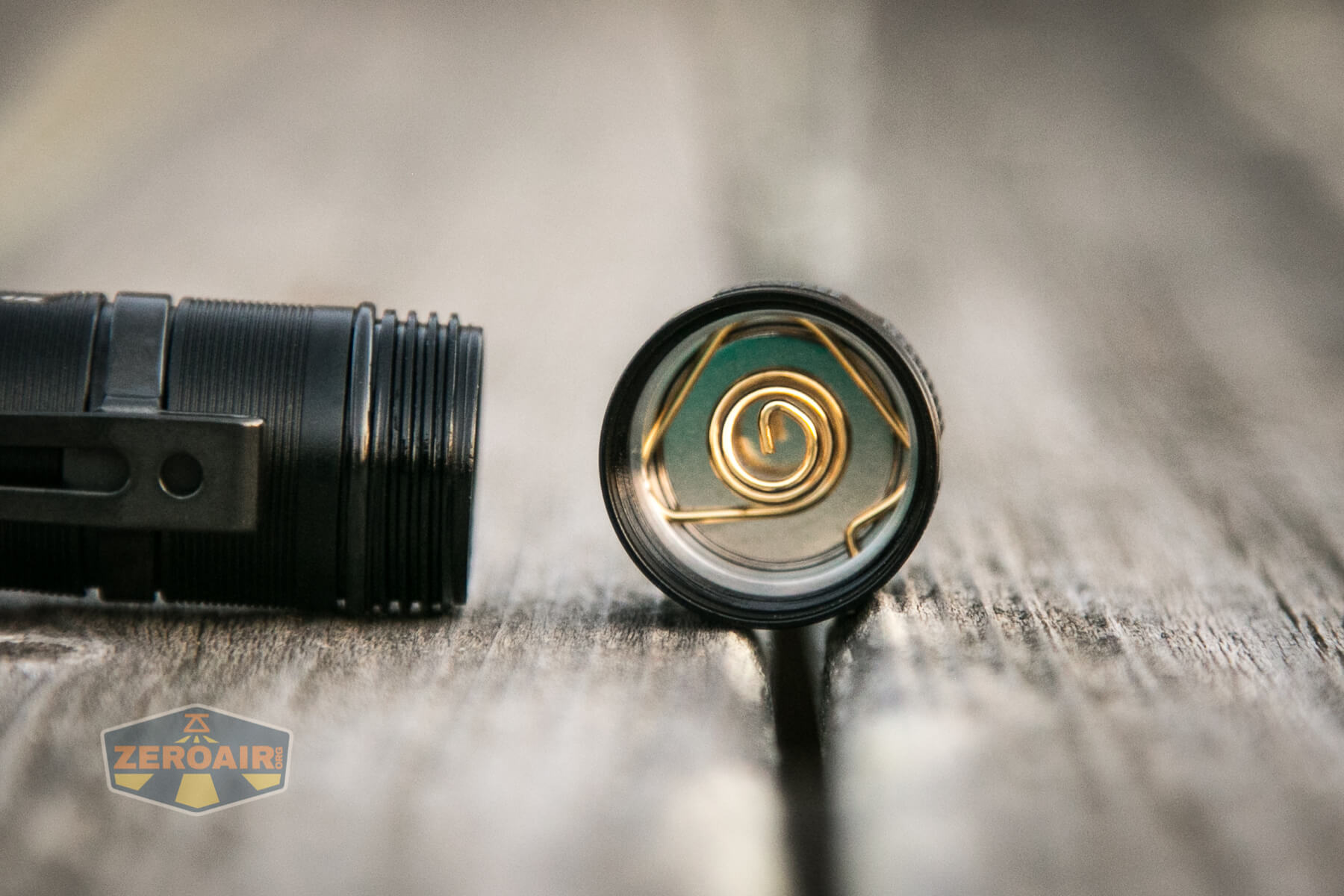 I didn’t access the head end. The head doesn’t come off the cell tube, and the bezel is either press-fit in, or screwed in with no access from the outside. It’ll take a lot of determination to do emitter swaps on this headlamp.