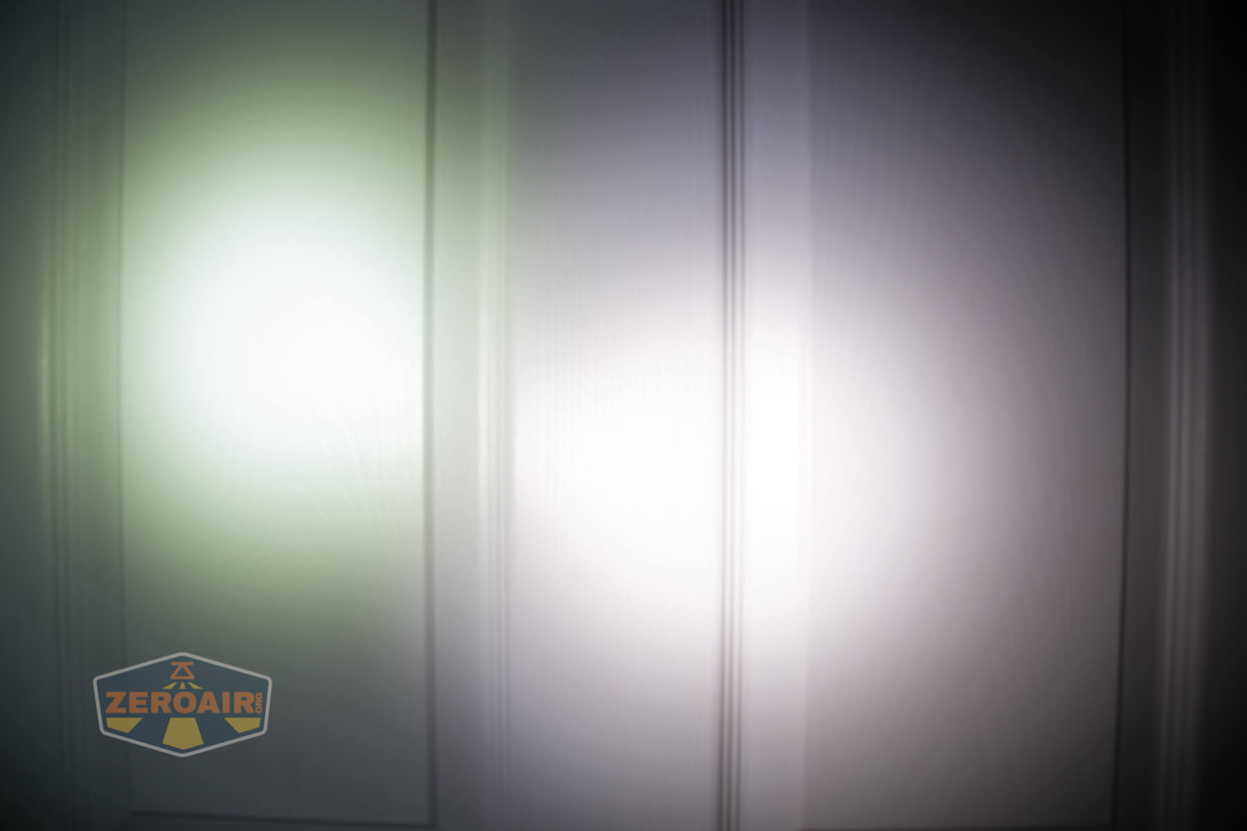 These beamshots always have the following settings: f8, ISO100, 0.3s shutter, and manual 5000K exposure. These photos are taken at floor level, and the beam hits the ceiling around 9 feet away. As with most other Anduril flashlight reviews, I’ve included a shot of the lowest mode of ramping (that’s the absolute lowest mode), then the seven stepped modes, then the highest mode available (double click from on state). Same below with the comparison photos.
