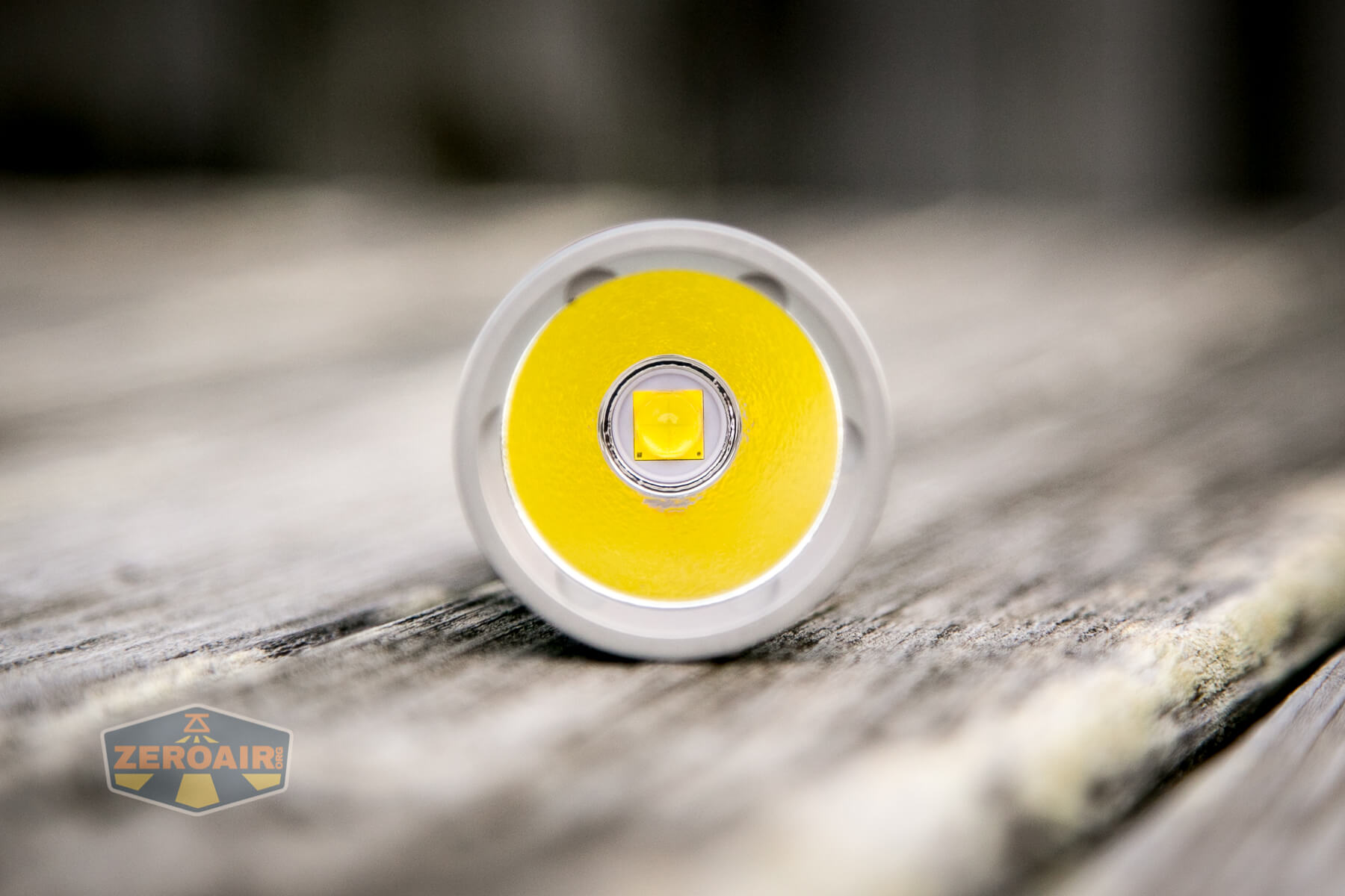 The emitter is a Cree XHP70.2. It’s at the bottom of a light orange peel, shallow reflector. This is the same emitter as the original version. I reviewed the Thrunite TC20 over 3 years ago – I guess that shows that the 70.2 emitter is either “just that good.”