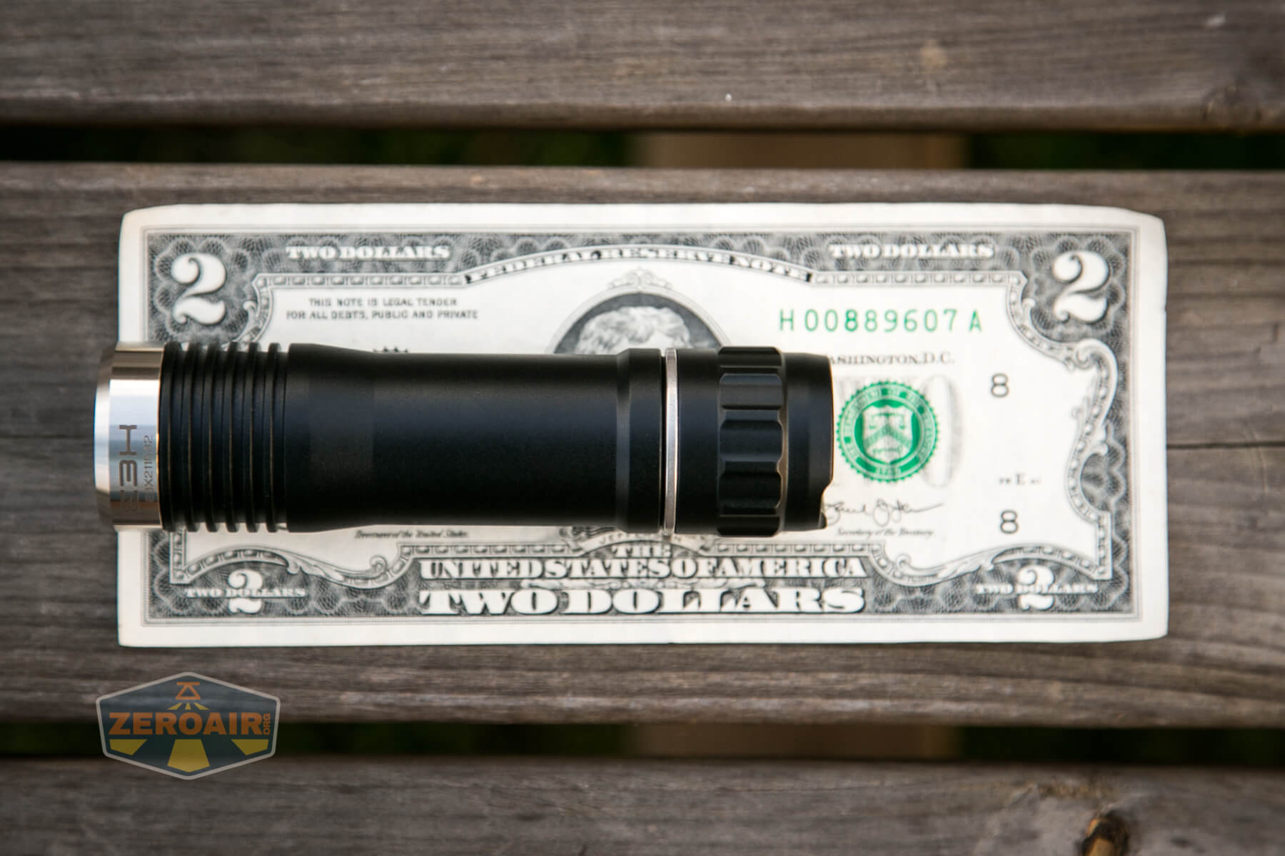 And here’s the light beside my custom-engraved TorchLAB BOSS 35, an 18350 light. I reviewed the aluminum version of that light in both 35 and 70 formats.