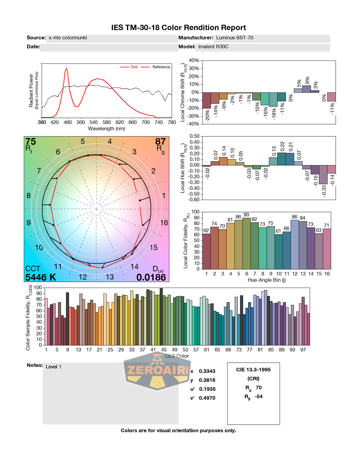 LED Color Report (CRI and CCT)