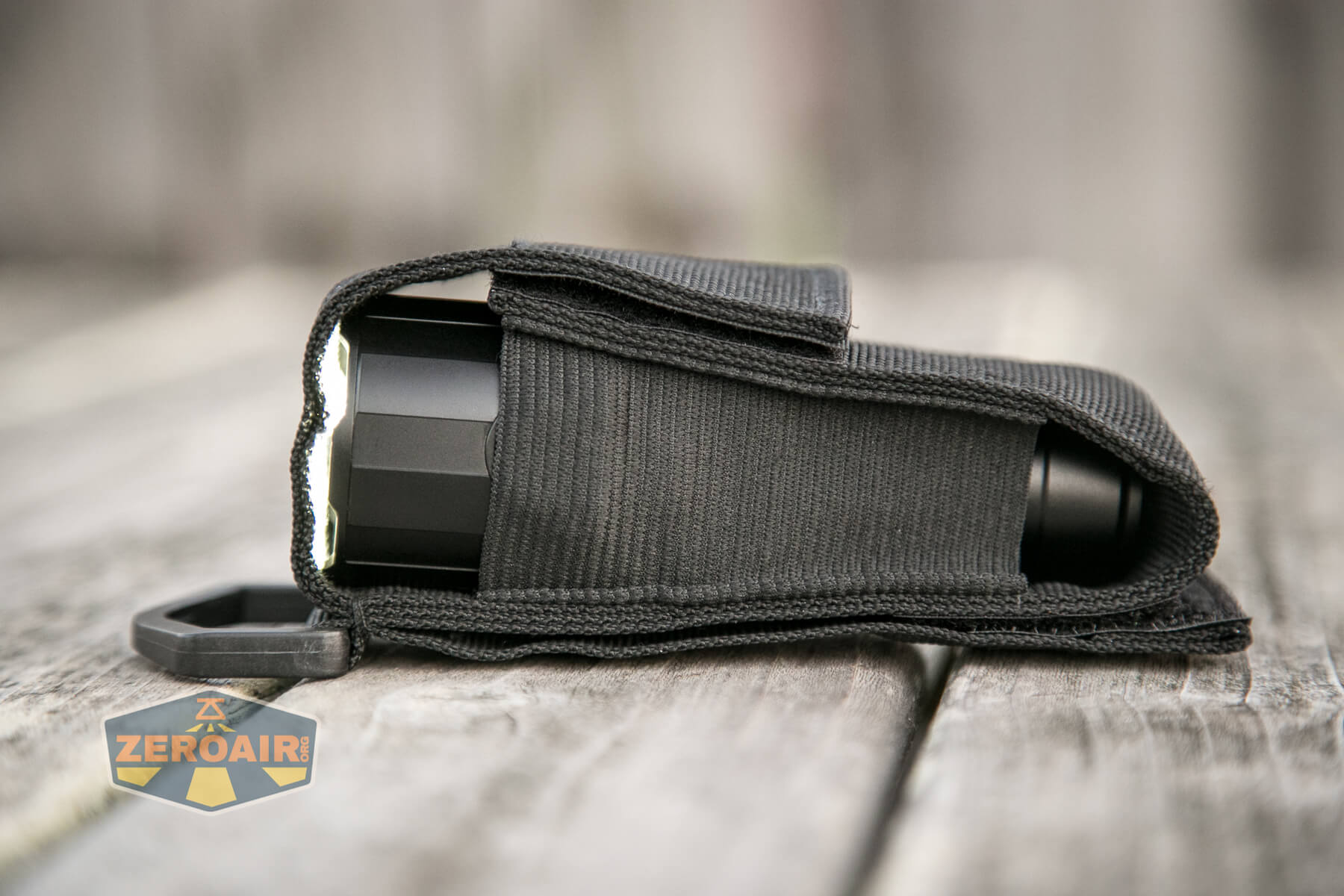 Included for carry of the Imalent R30C flashlight is this nylon pouch. This is a fairly standard nylon pouch, into which the light fits only “bezel-up.”