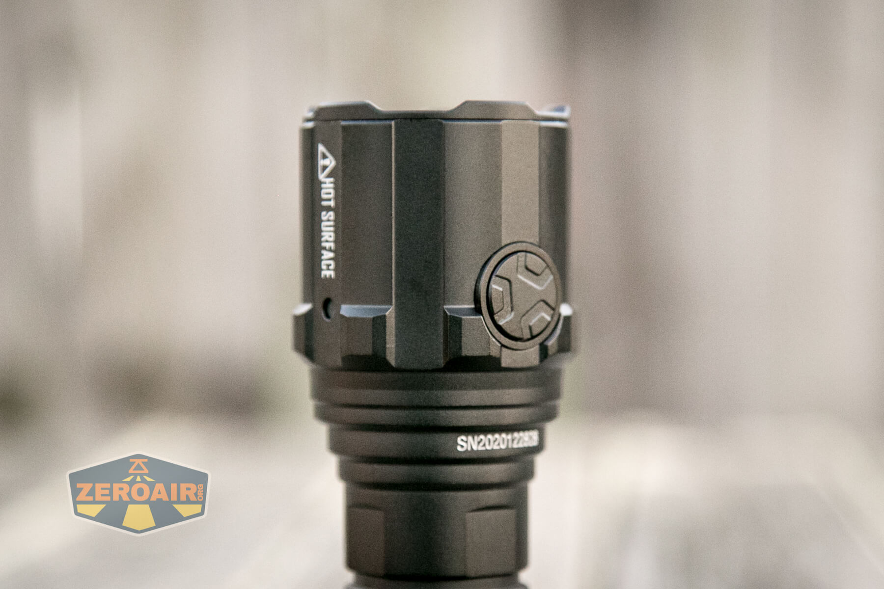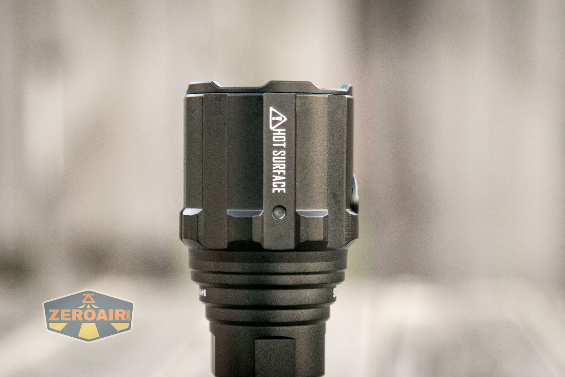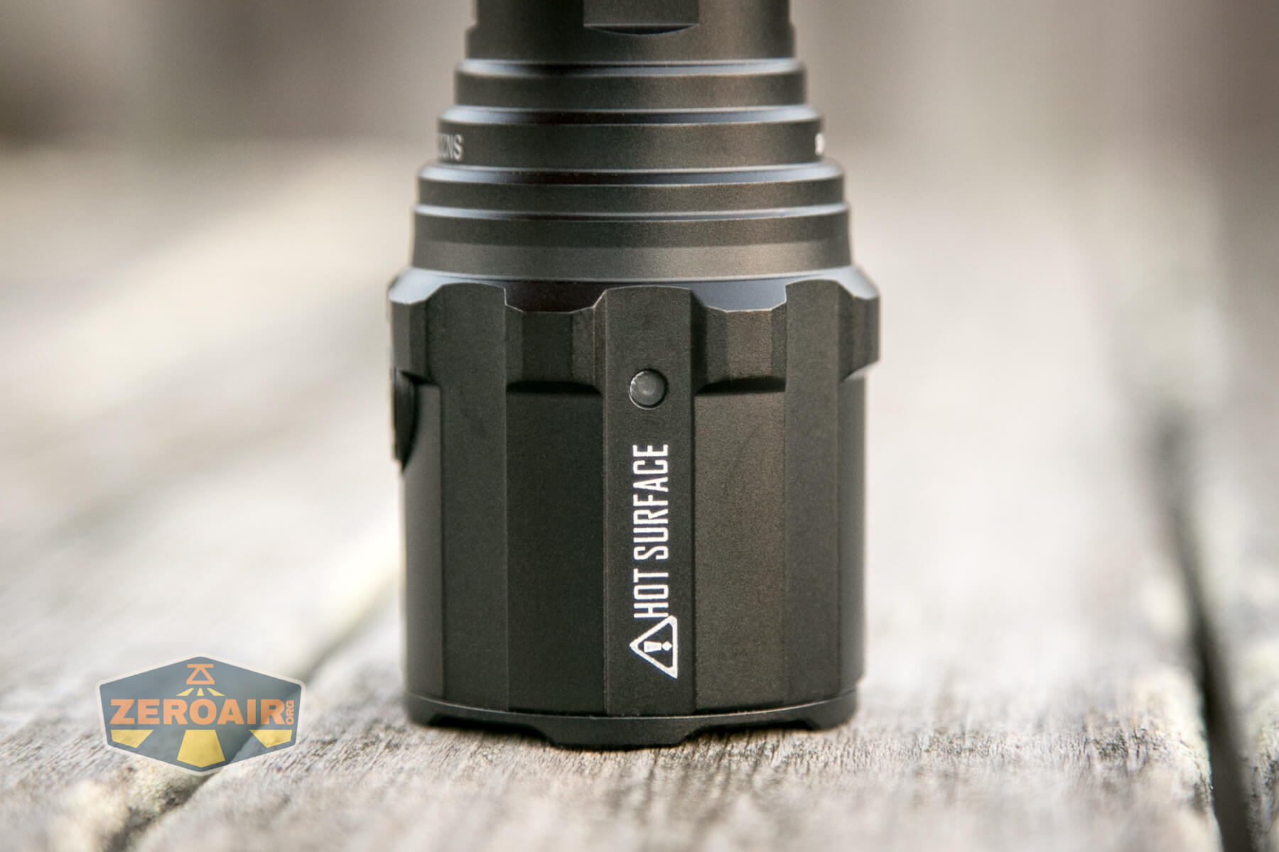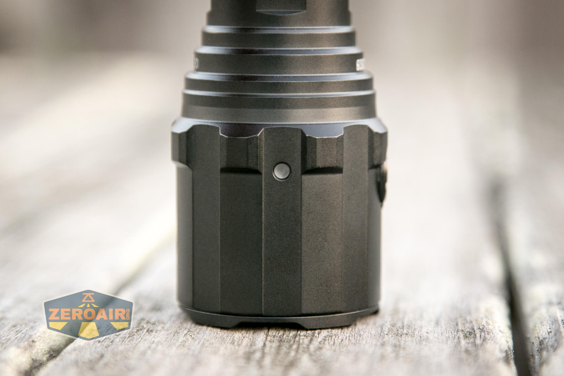 There are two indicators on the Imalent R30C flashlight and neither of them is on the switch (surprise!). These indicators are on the head, and the two are opposite each other.