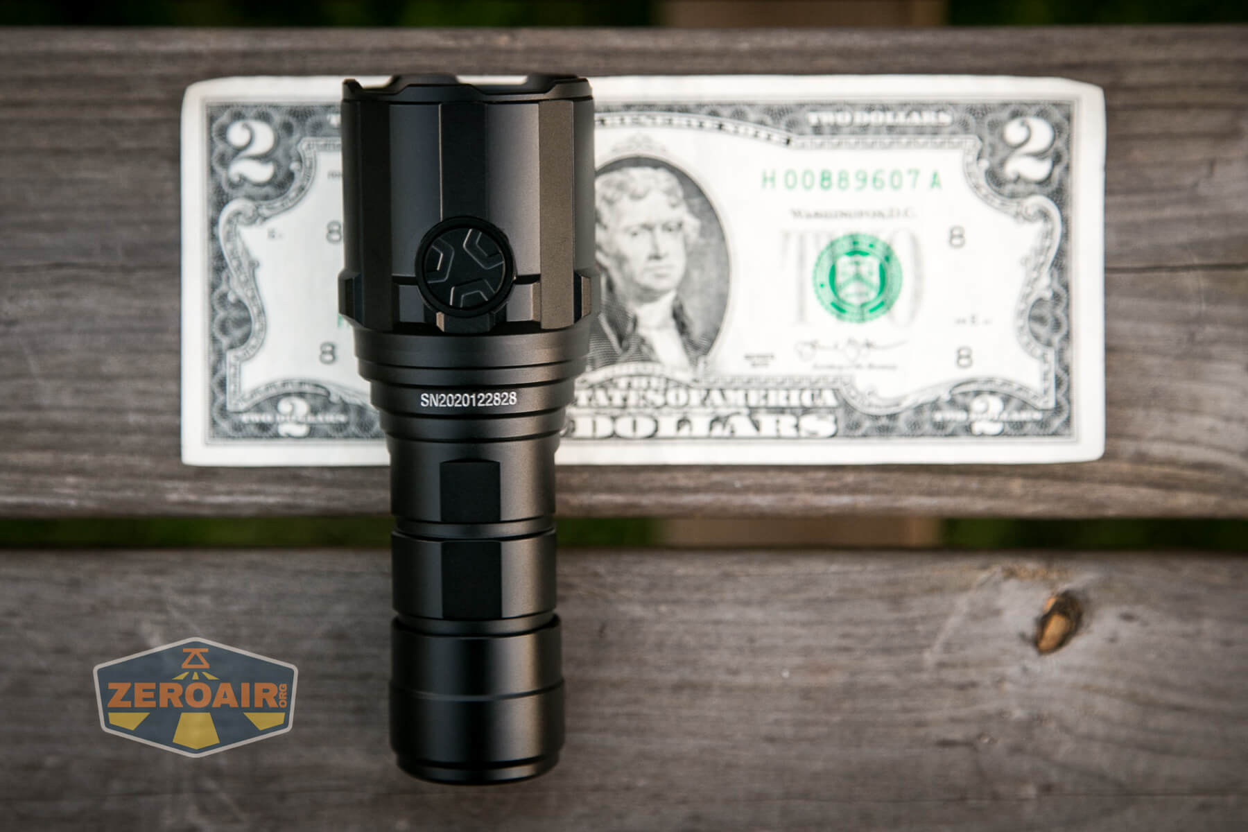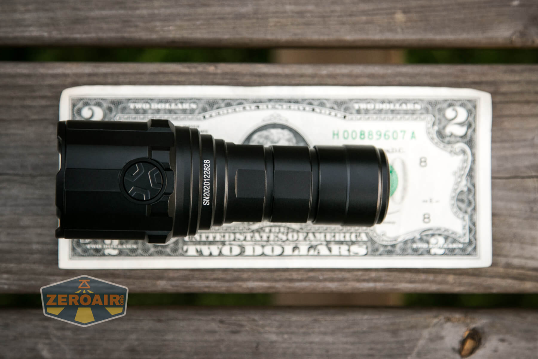 And here’s the light beside my custom-engraved TorchLAB BOSS 35, an 18350 light. I reviewed the aluminum version of that light in both 35 and 70 formats.