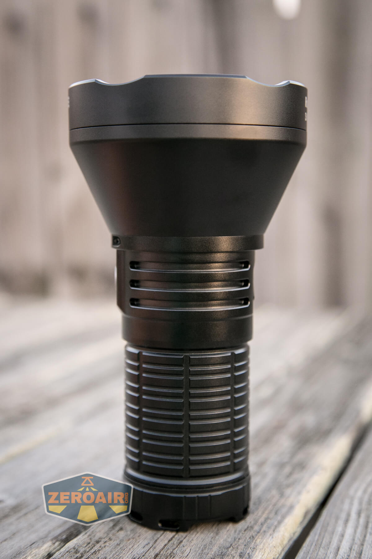 You can see on the body, head-side, there are minimal-depth cooling fins. This is good since the light draws around 20A on turbo (!!!).