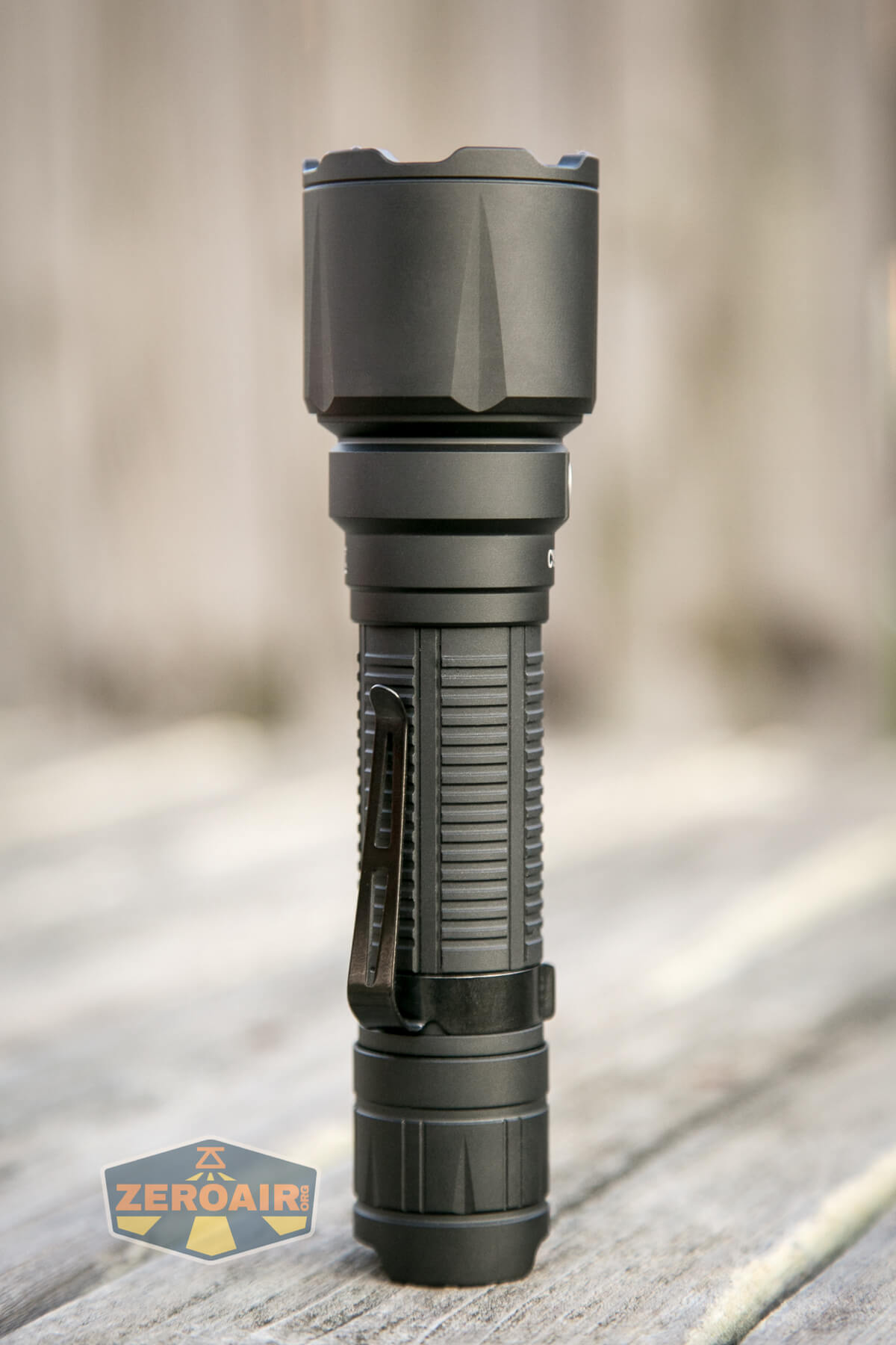 This is a “tactical” flashlight – though I’m not certain what the qualifiers are for “tactical.” Strike bezel? Check. Dual switch interface? Check. Momentary turbo or strobe? Hold up wait…