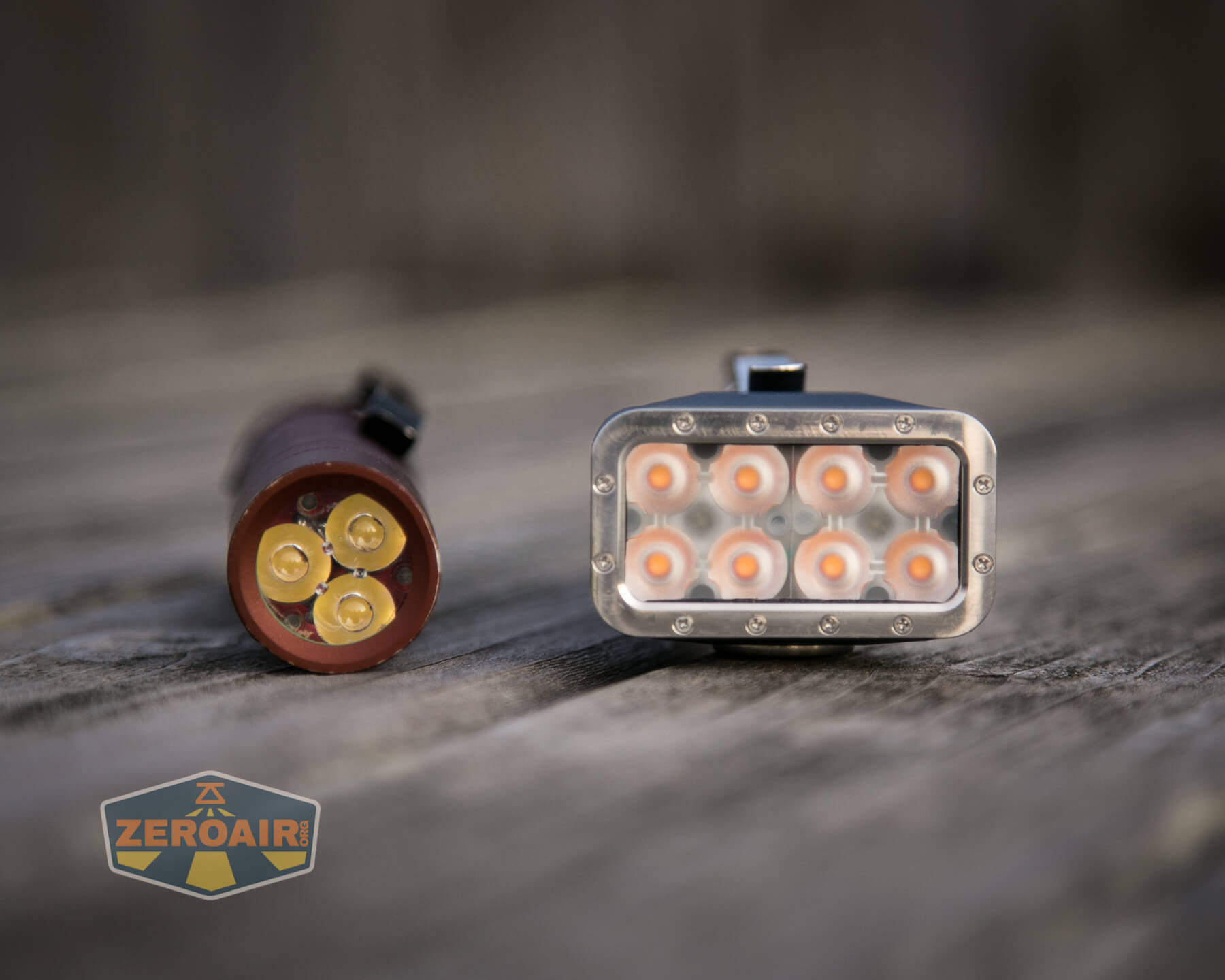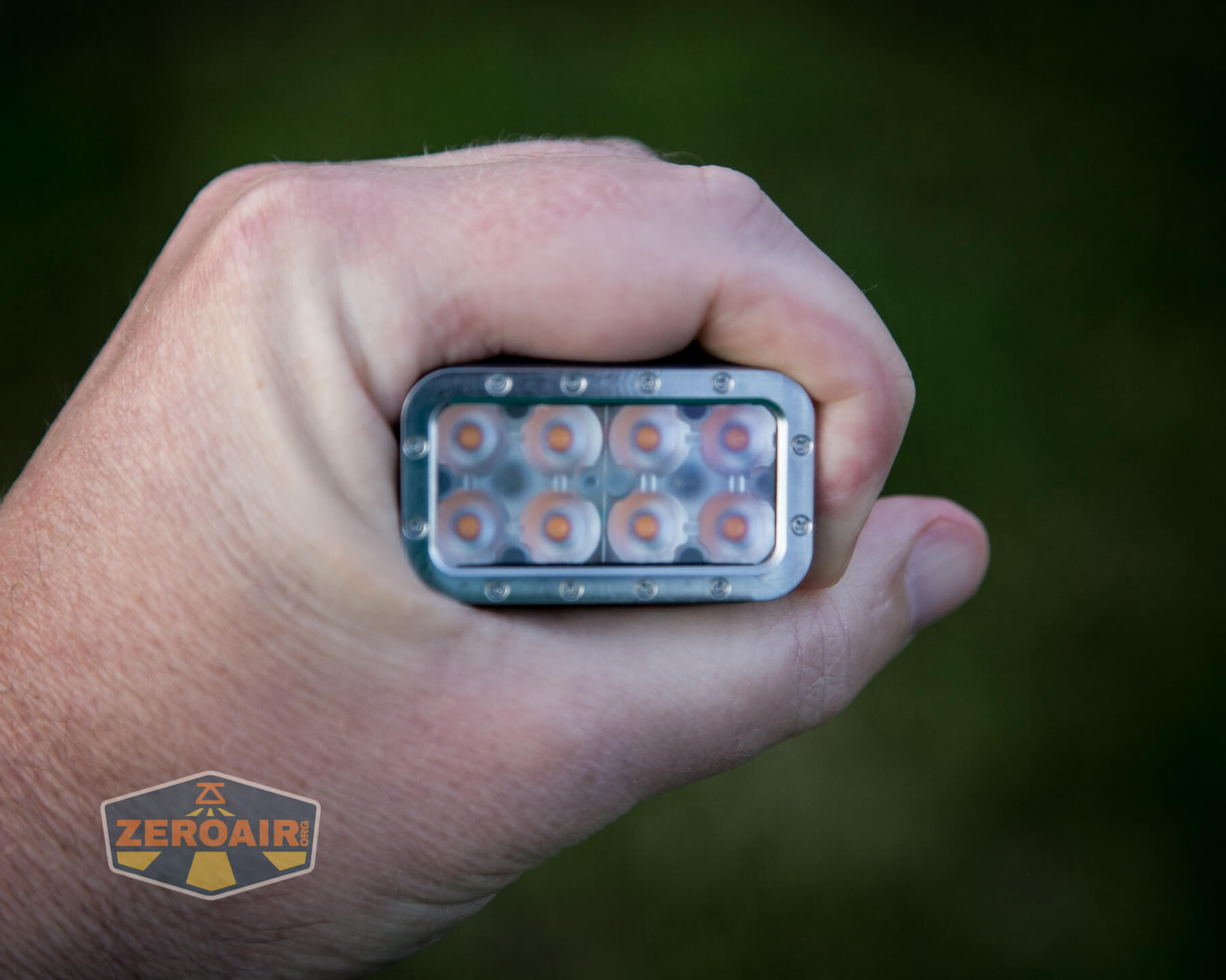 The emitters in this Emisar DT8 are Nichia E21A at a temperature of 2700K. There are two sets of four of them, making this a “double quad.” It’s also possible to even mix emitters, for example, 3500K and 2700K, which could add to the rosy tint. So if rosy tint is something you desire, consider asking for a temperature mix!