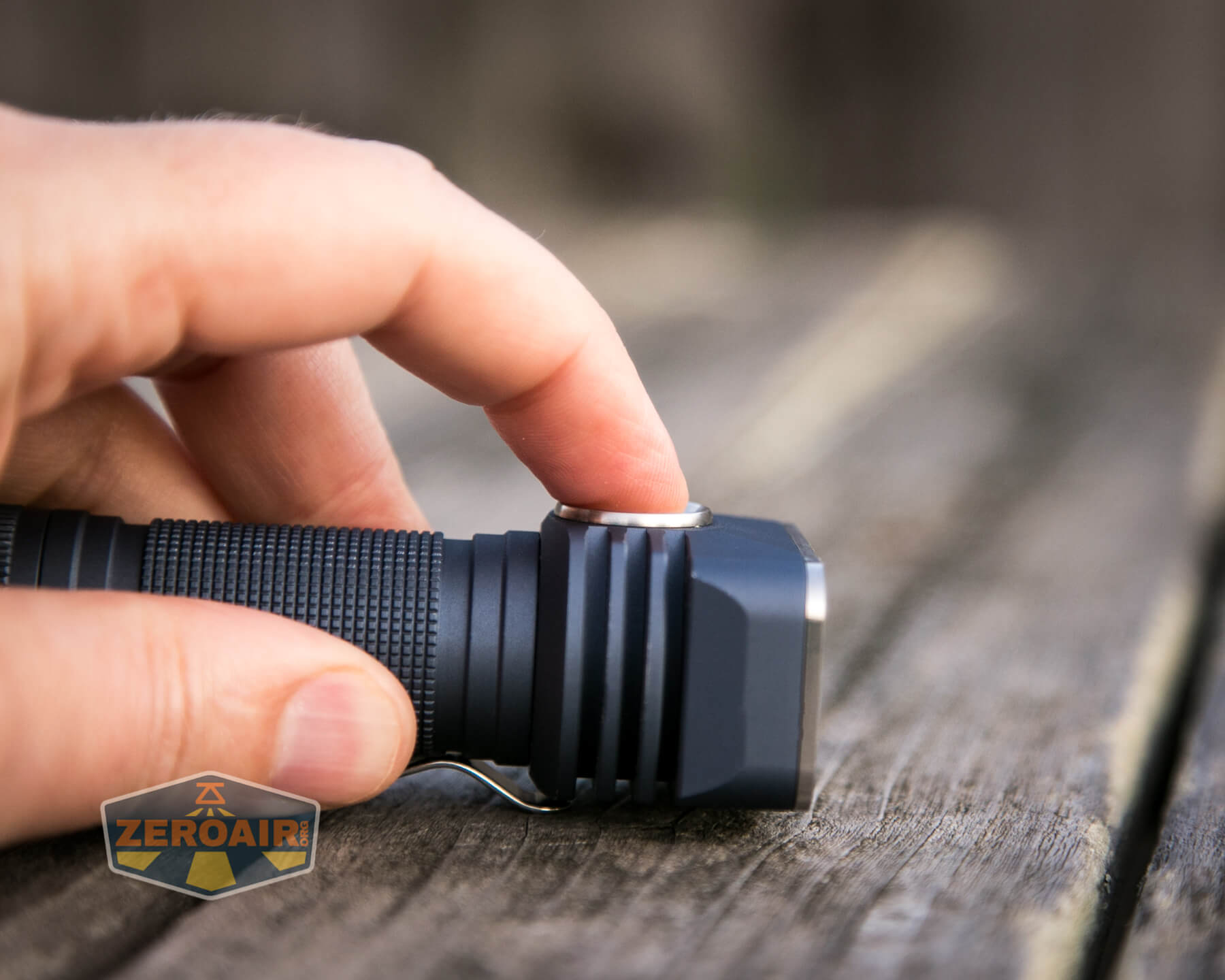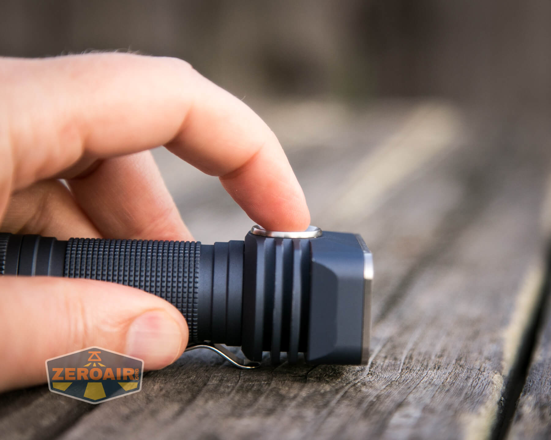 There’s one switch on the Emisar DT8. It’s a side e-switch, with four white indicating LEDs. It’s quiet but very clicky, and the rubber cover is nice and grippy. This one has the “Warm White” backlighting, but Cool White and other colors are also available.