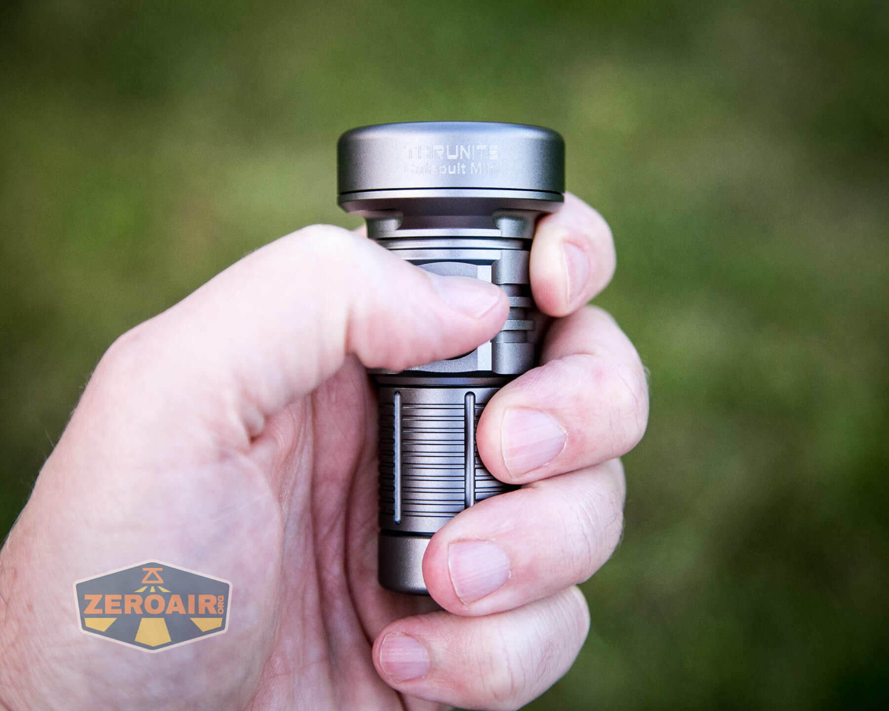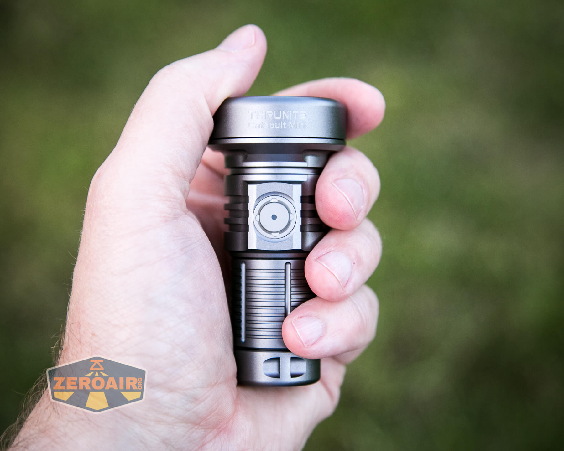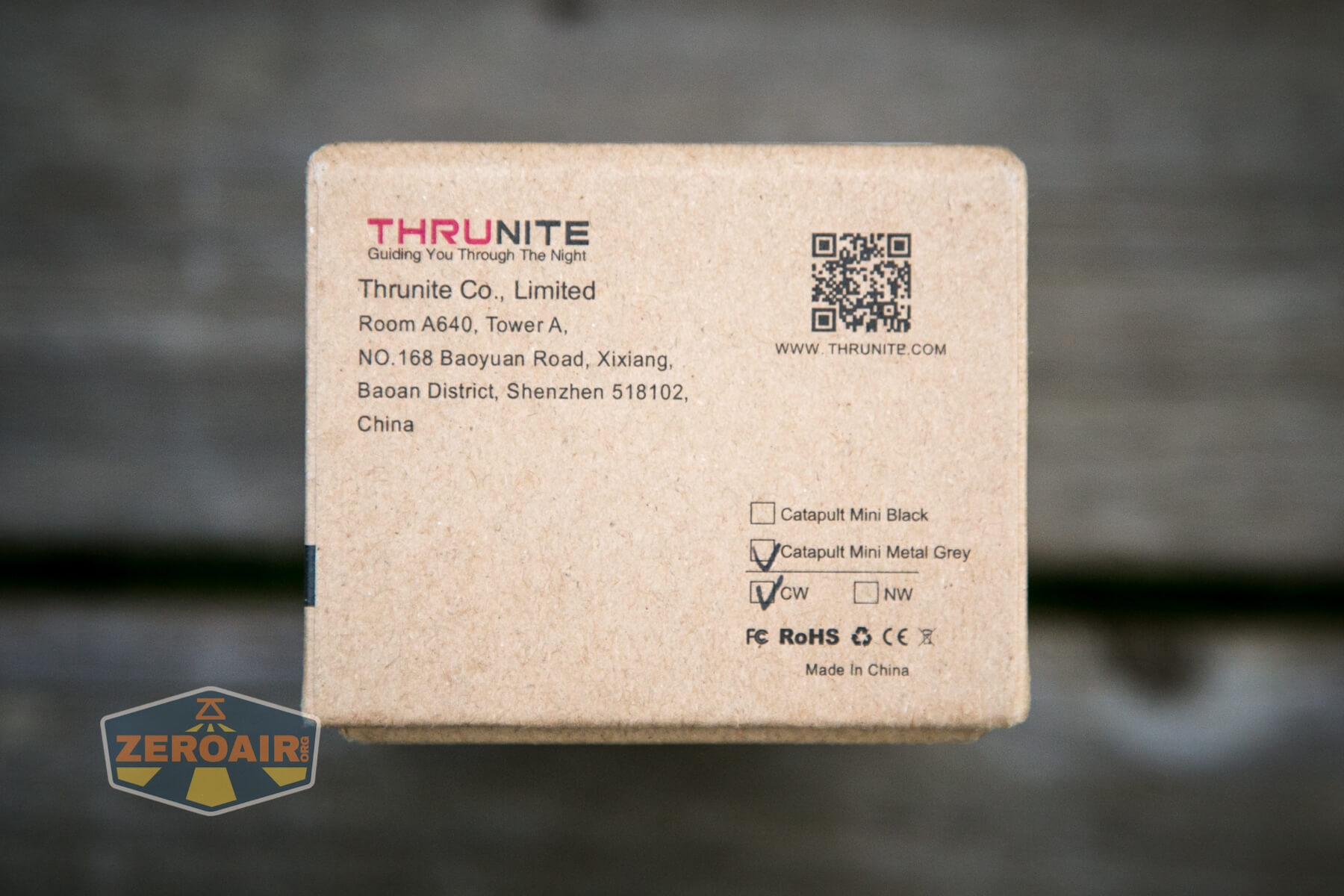 There are two versions of the Thrunite Catapult Mini available, but they differ only in body color. There’s black, and there’s “Metal Grey” (seen here). The emitter is the same – Osram Flat White (cool white) for both.