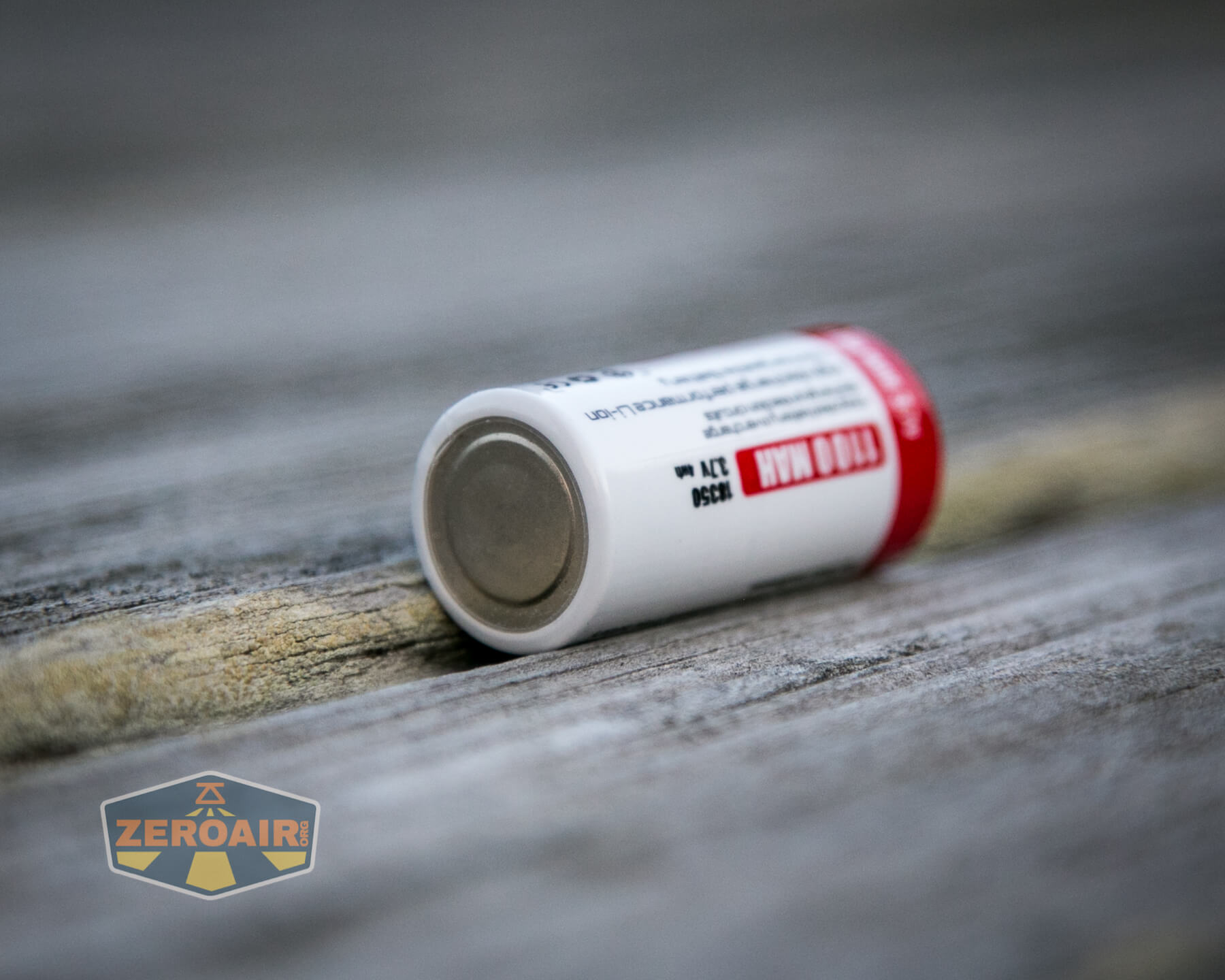 The Thrunite Catapult Mini is powered by a single lithium-ion cell. One is provided, seen below. It’s a 1100mAh 18350, with a proprietary connection on the positive end. This connection has both positive and negative terminals. See below but read now: there’s actually no reason for these proprietary connections!