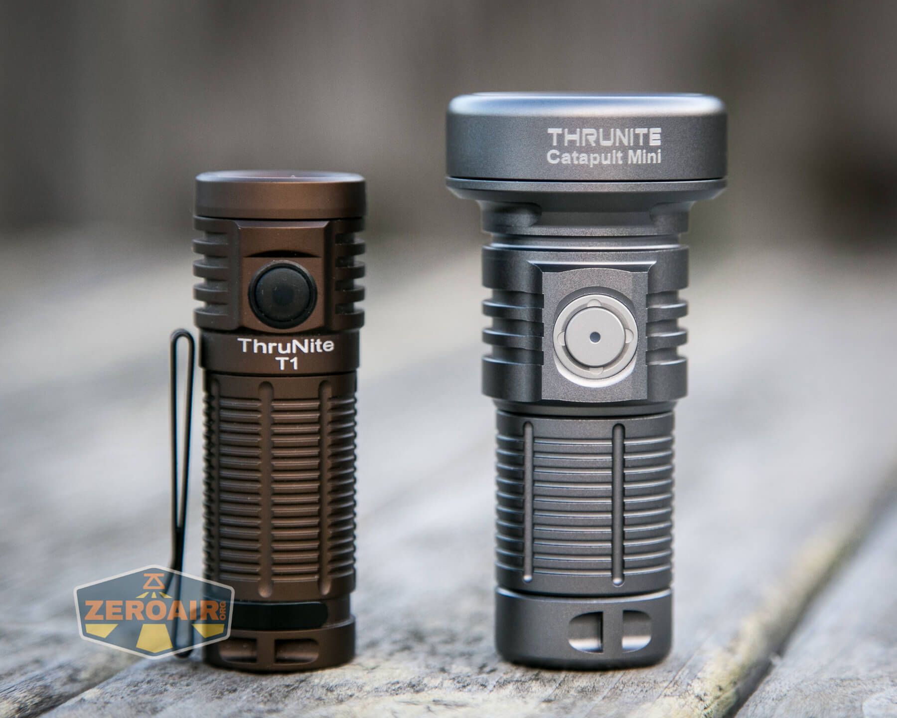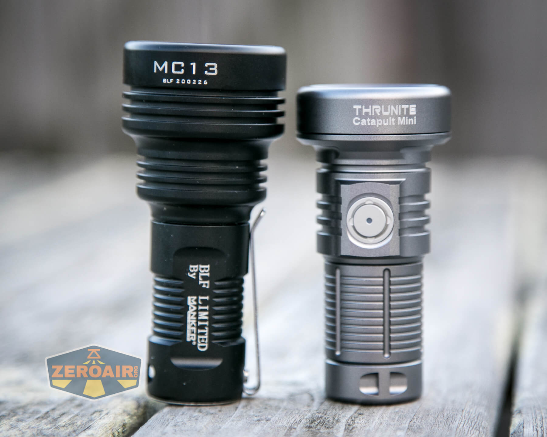 And here’s the Thrunite Catapult Mini beside the thrower from the Muscle Combo, the Manker MC13. The Thrunite Catapult Mini is quite a bit smaller!