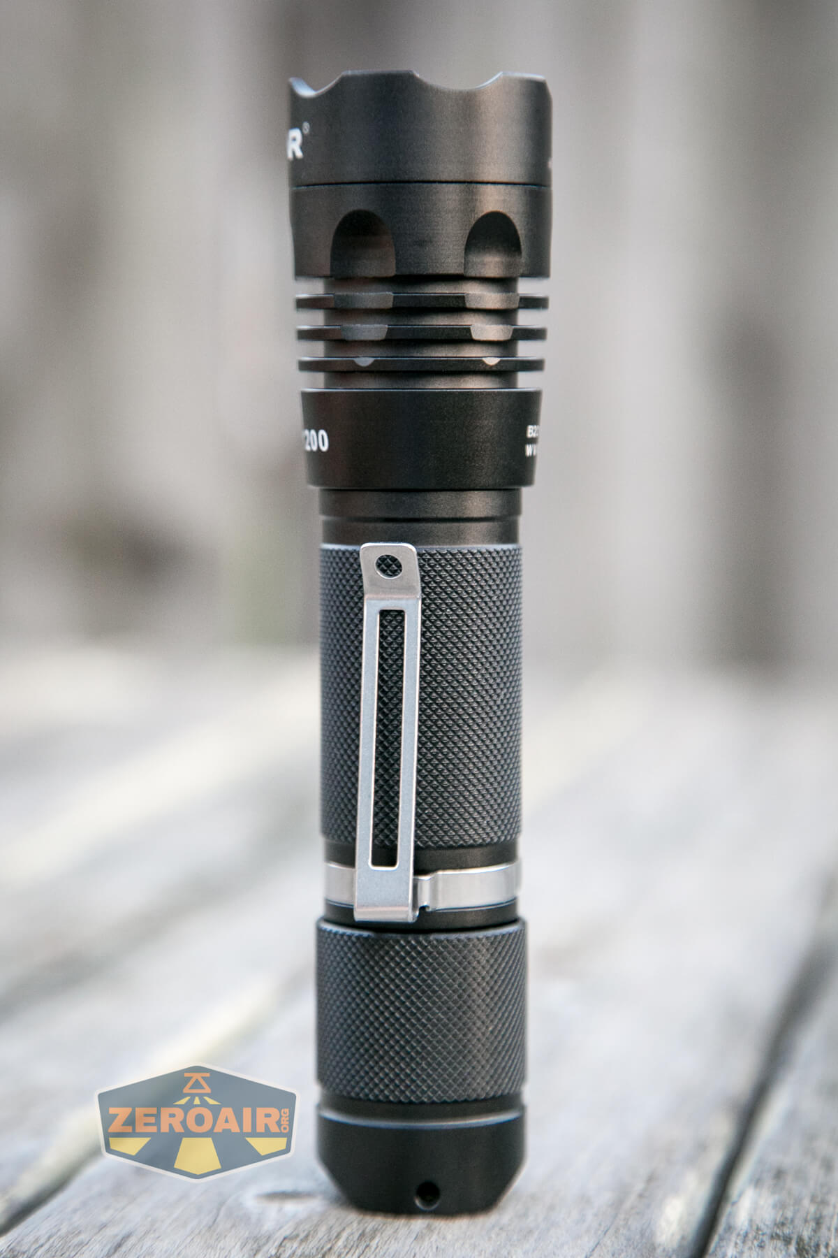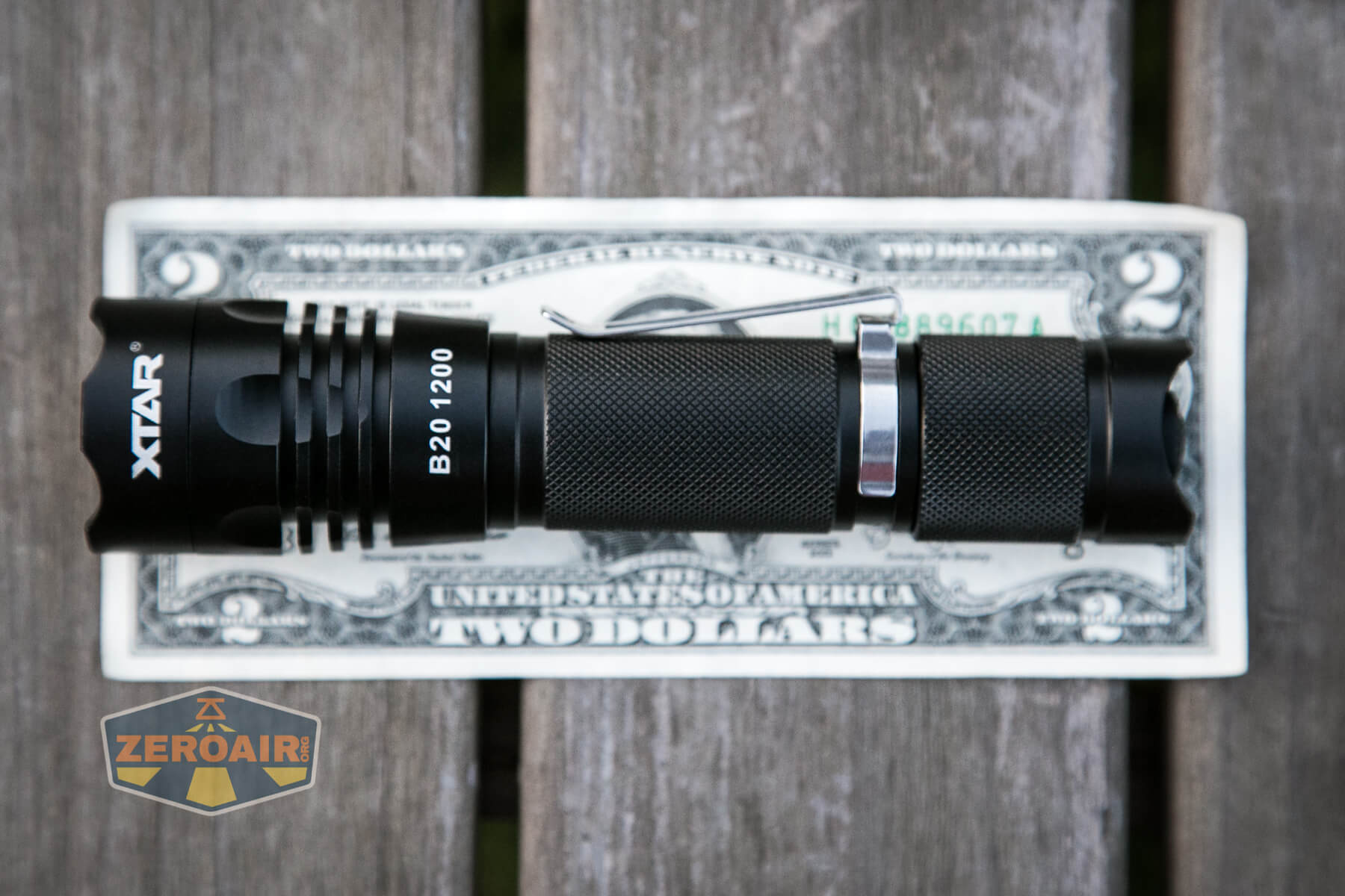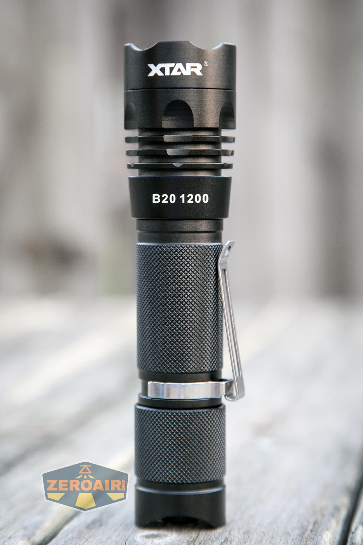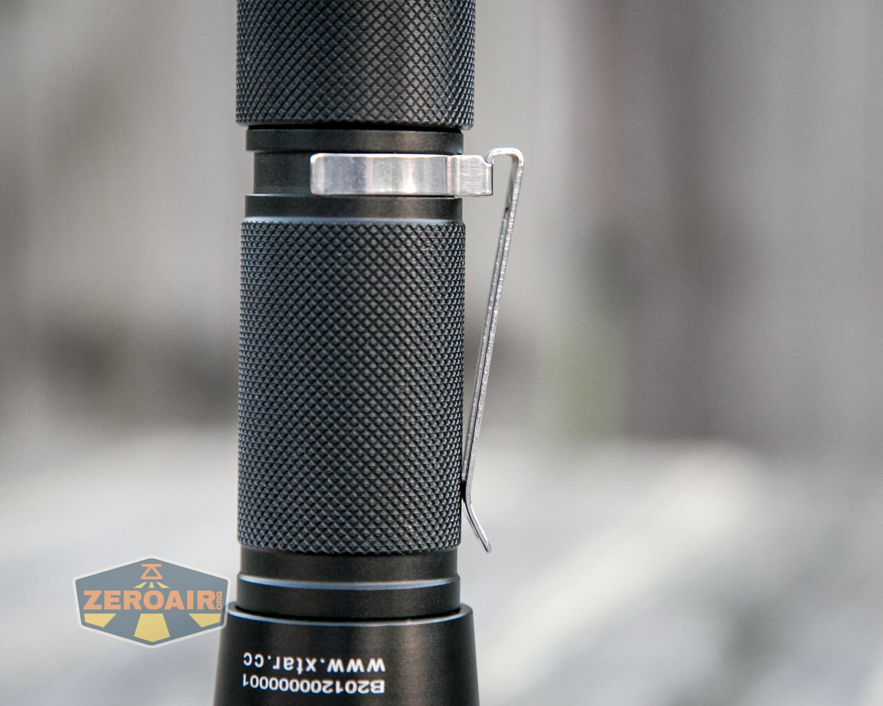 A few means of carry for the XTAR B20 1200 flashlight are included. First is the friction-fit pocket clip.