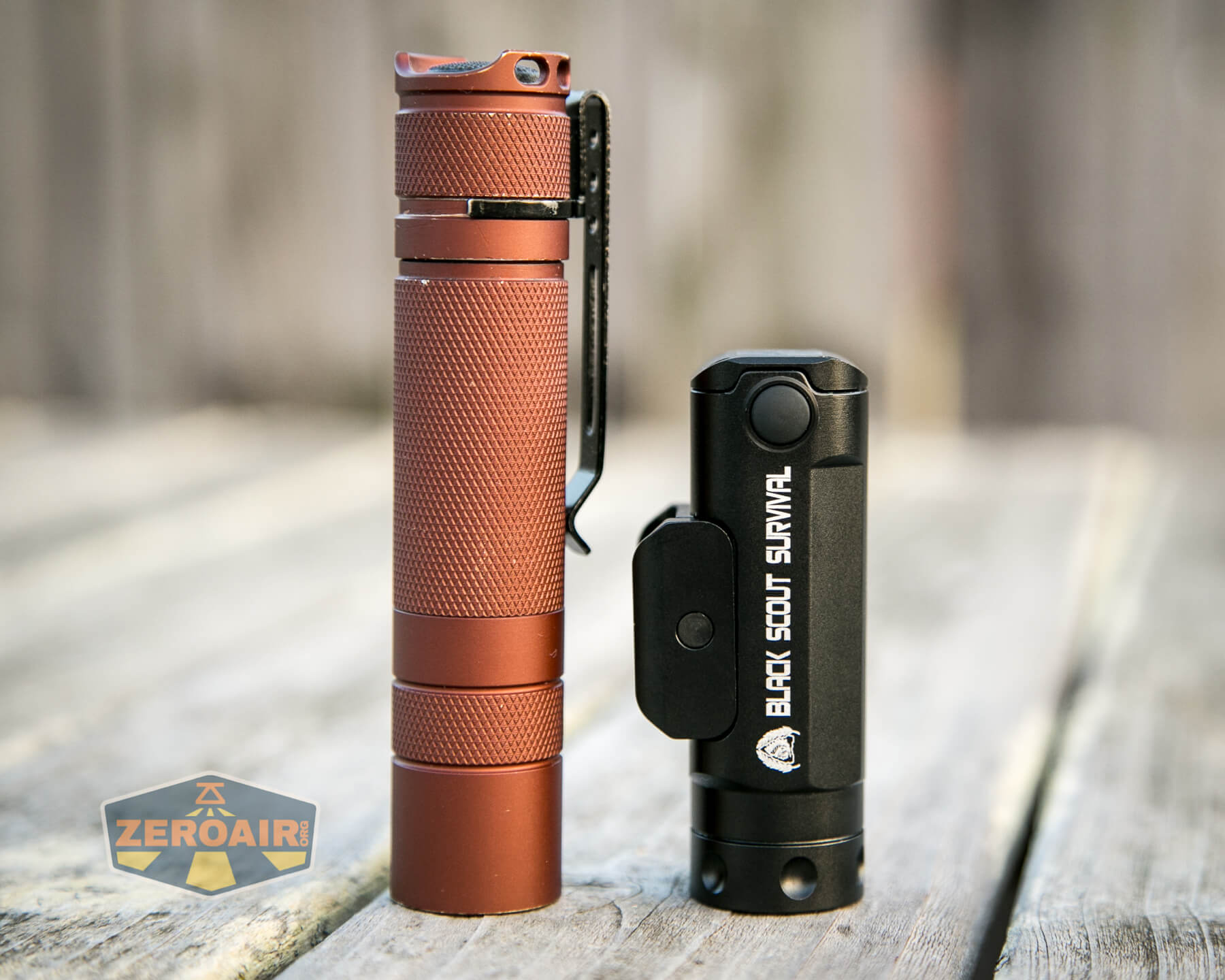 And here’s the light beside my custom-engraved TorchLAB BOSS 35, an 18350 light. I reviewed the aluminum version of that light in both 35 and 70 formats.