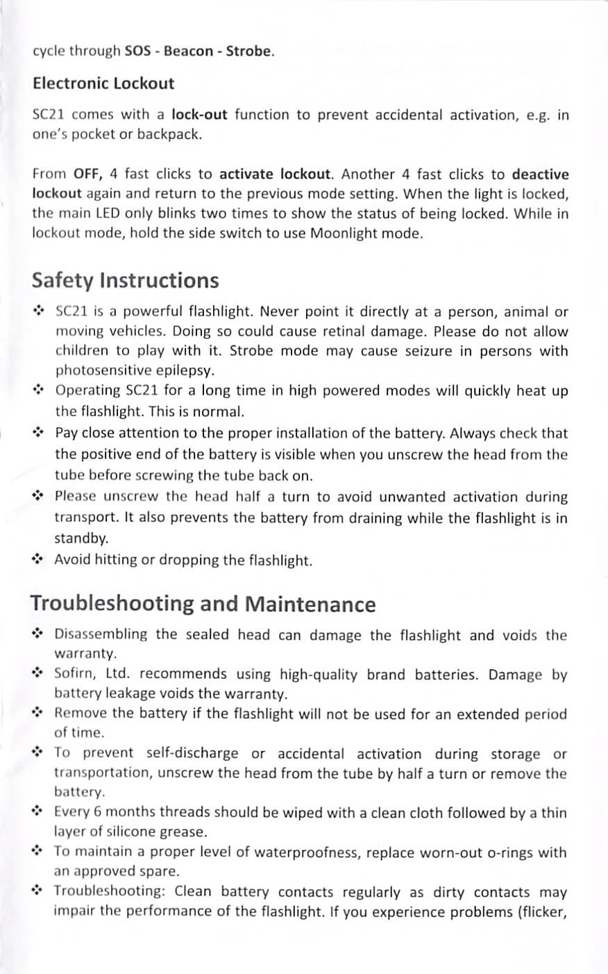 | Lockout | Click | Main emitter blink 2x to indicate lockout |