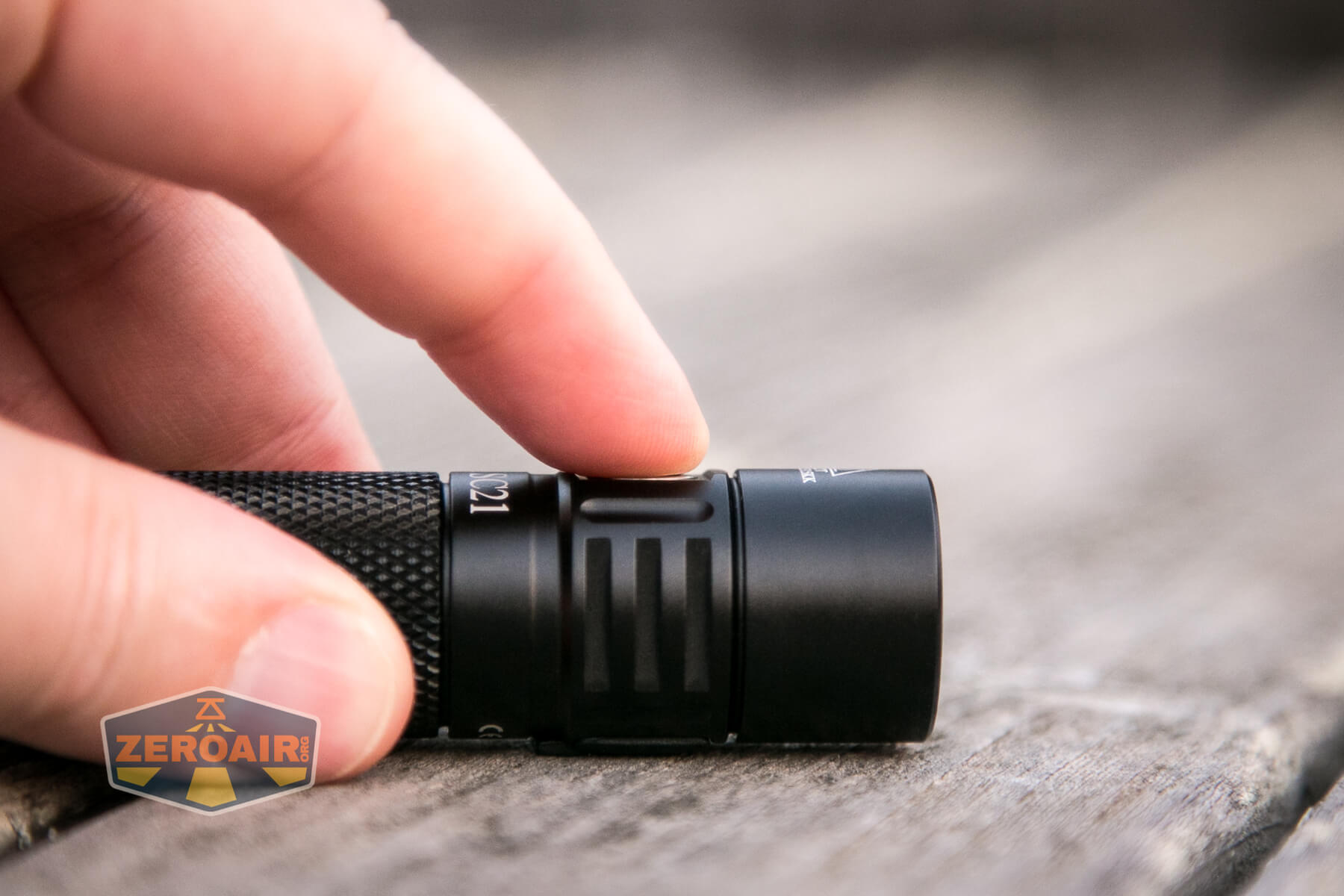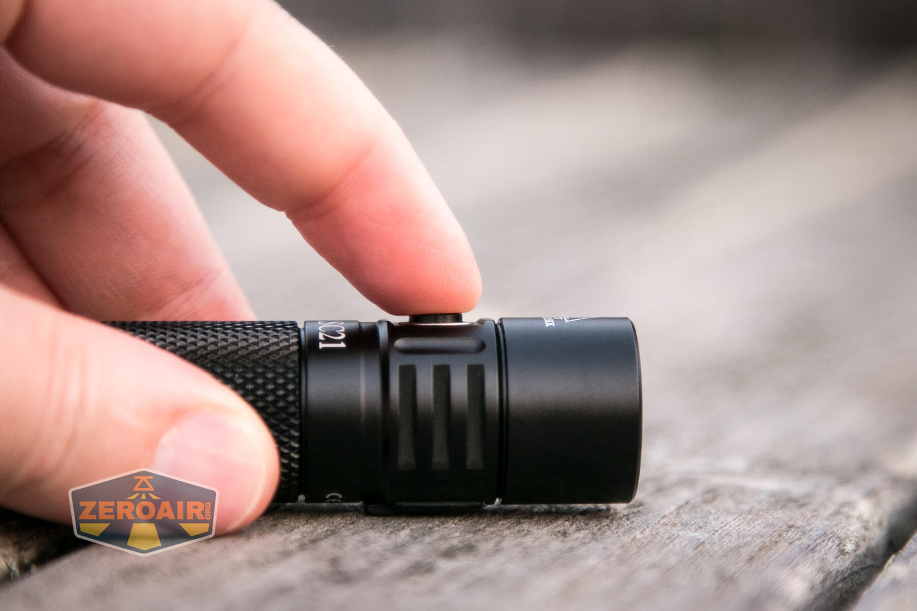 The Sofirn SC21 flashlight is controlled by a single switch. It’s an e-switch on the side of the head.