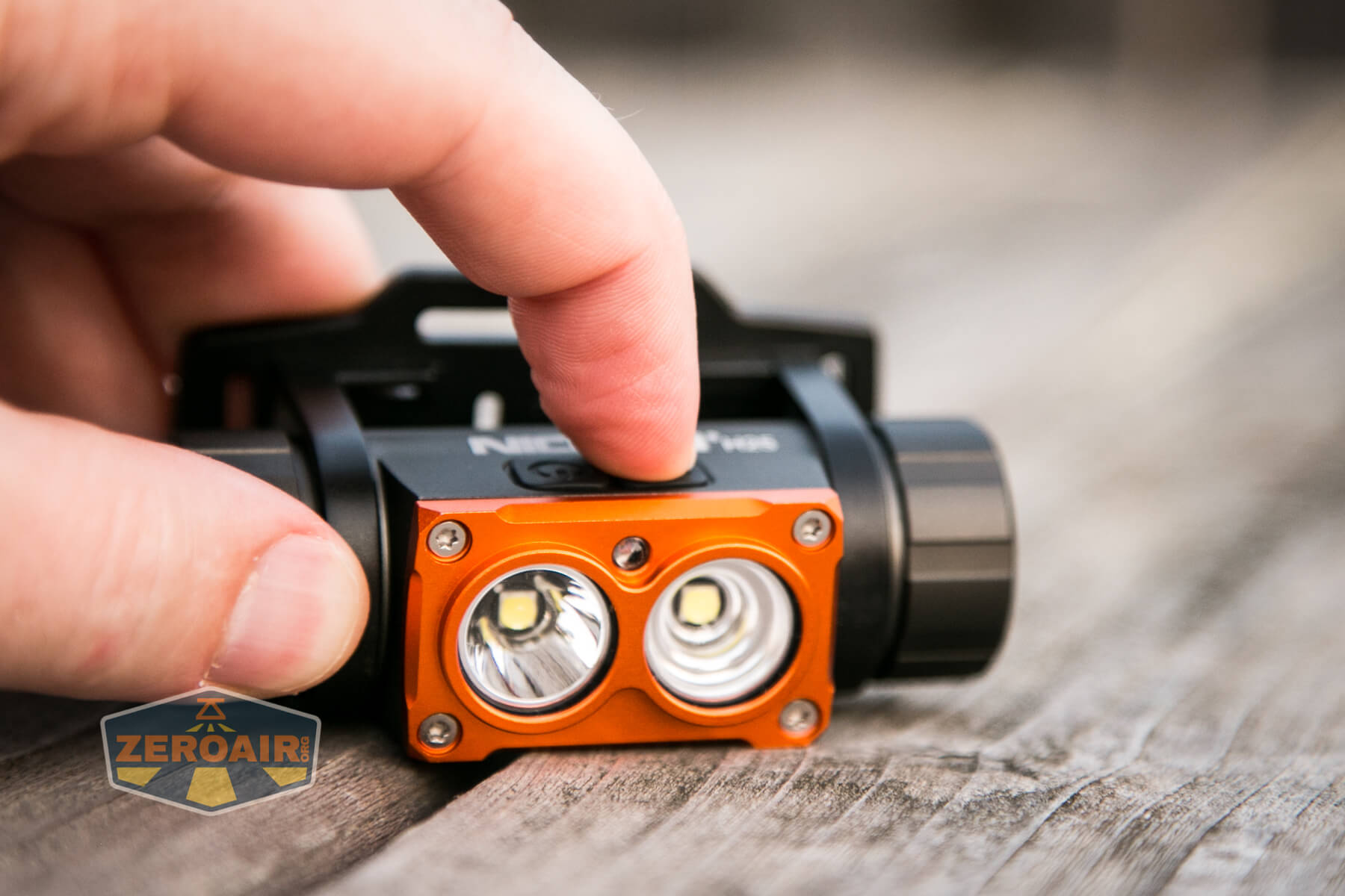Two switches are used for the operation of the Nicron H25 Headlamp. One’s a power switch (and has a power symbol, and Nicron calls this one “Switch A”) and the other one controls the floodlight and is called “Switch B.”)