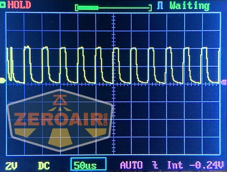 Then there’s the Ultrafire WF-602C flashlight, which has some of the worst PWM I’ve seen. It’s so bad that I used a post about it to explain PWM! Here are multiple timescales (10ms, 5ms, 2ms, 1ms, 0.5ms, 0.2ms) to make comparing this “worst” PWM light to the test light easier. That post also explains why I didn’t test the WF-602C at the usual 50us scale.