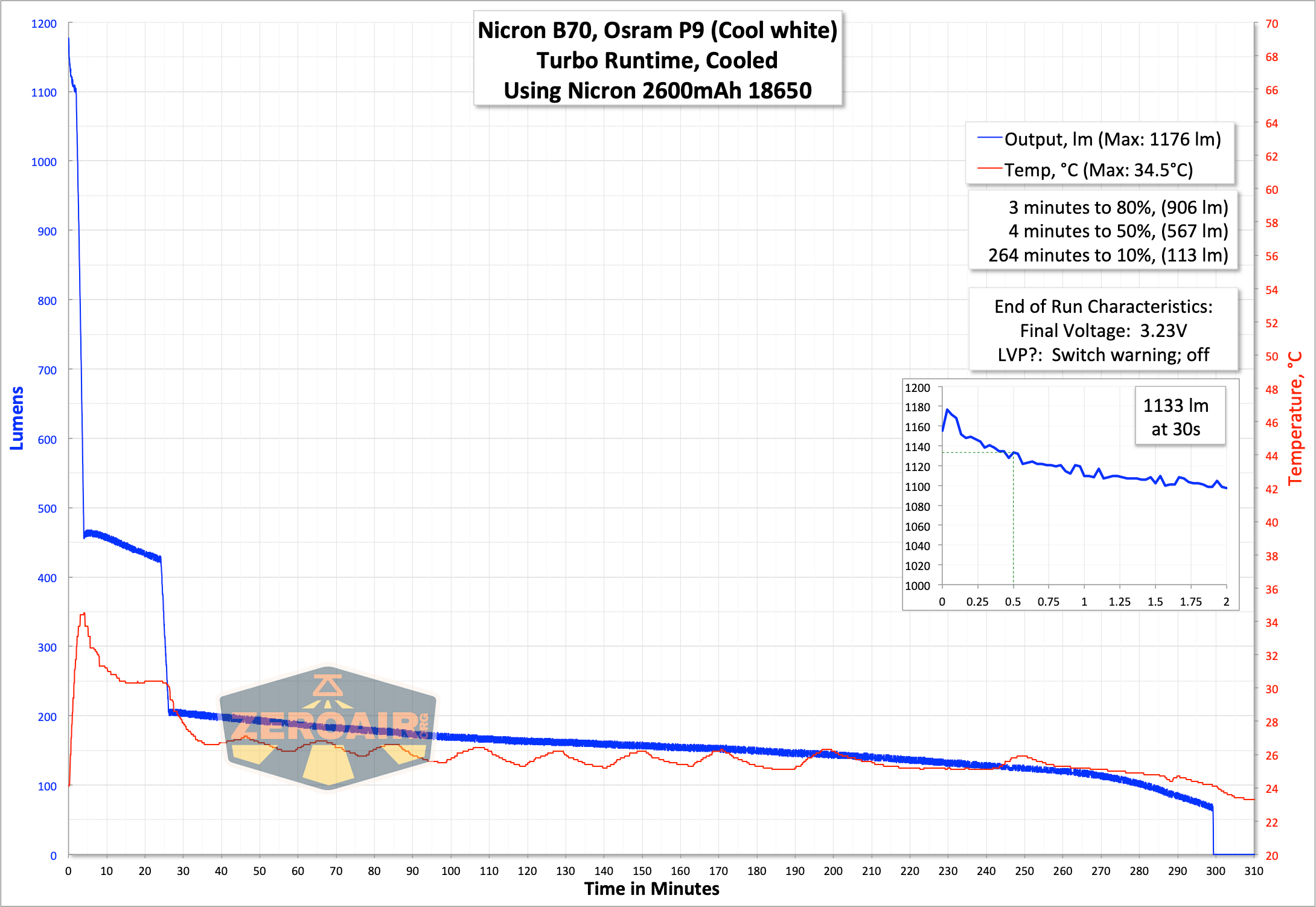 | Measured Lumens (at 30s) | 1133 (94.4% of claim)^ |