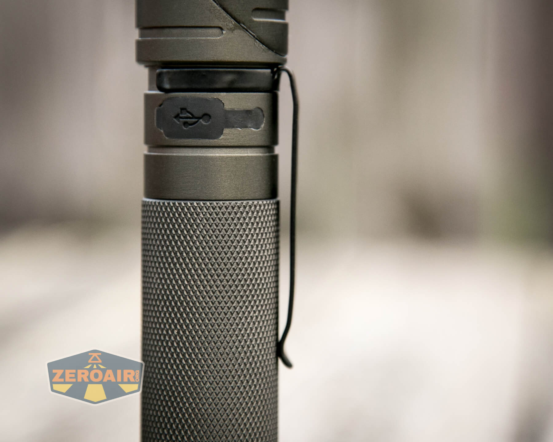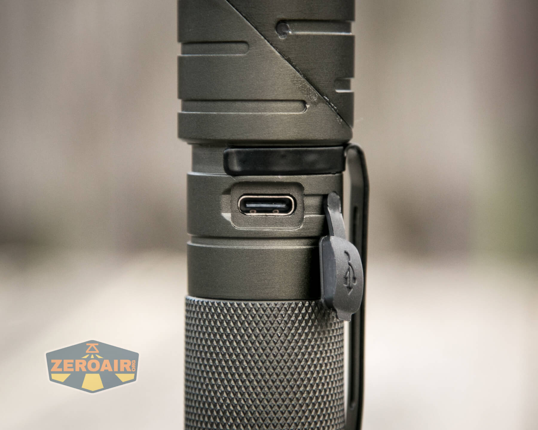 USB-C is the way of charging on this Nicron B70. The USB-C port is protected by a press-in rubber cover. While the charge port is a little thin, it seats into the light very well.