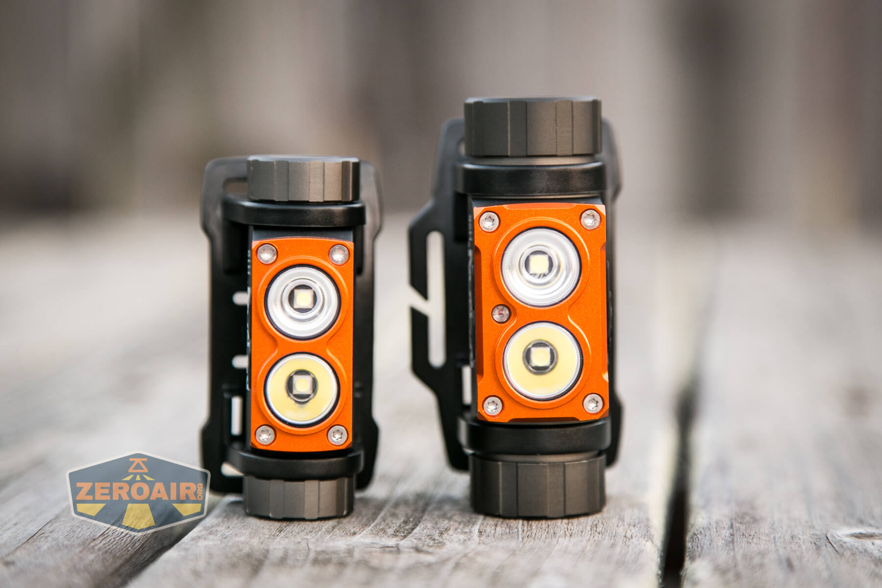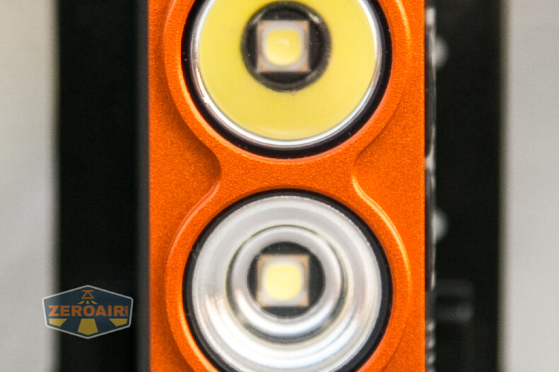 I said Nicron sent a few lights. They sent this H15, but they also sent an H25, which you can see below. These lights are very similar in look. And they do both have dual emitters. But the user interface is slightly different, the emitters are different, and of course the cell used is different. Between the two I’d call the H15 a better choice, simply because it will also run on 1.5V cells!