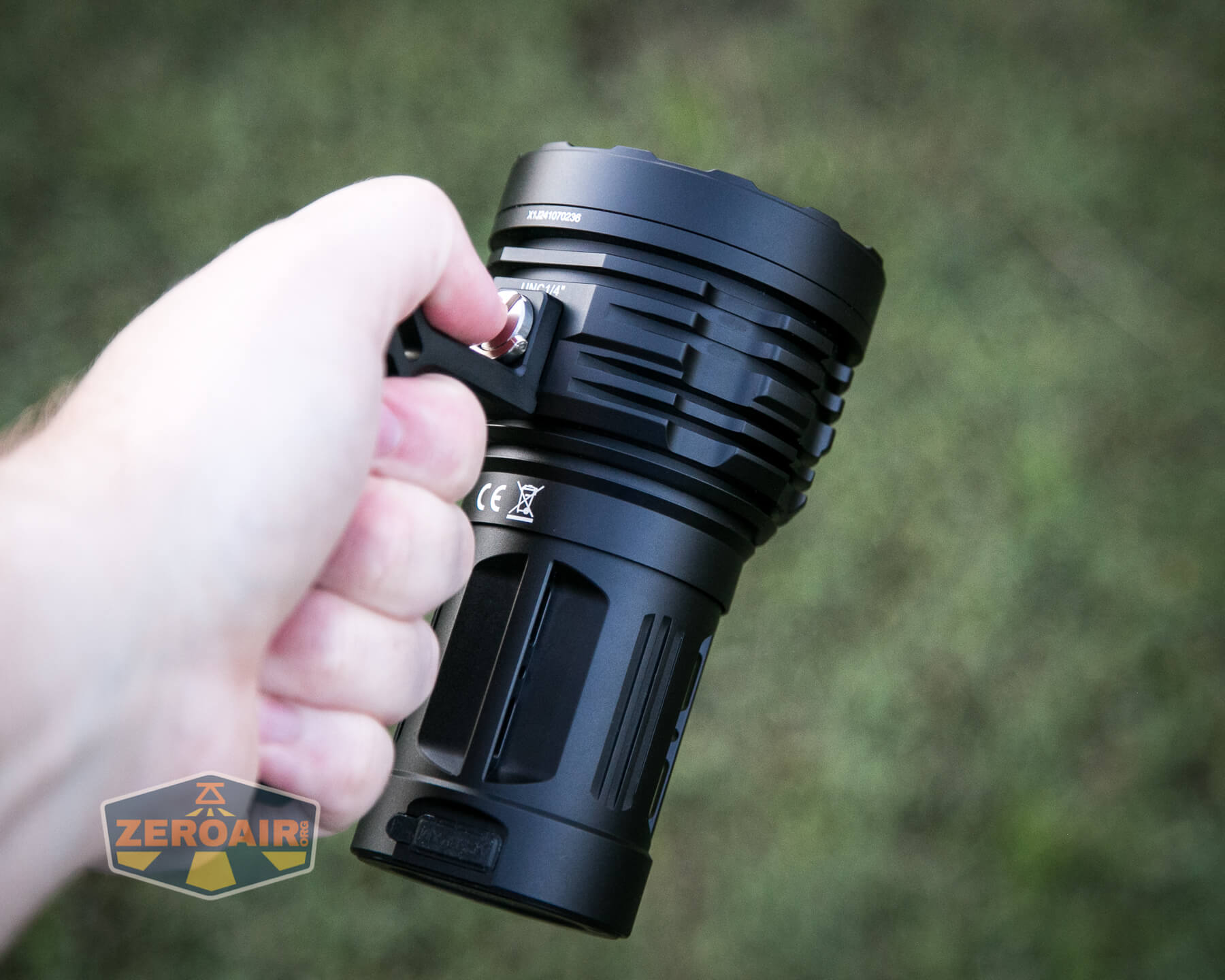There’s just one switch on the Acebeam X50 Searchlight. Long-time readers will expect me to love it because it has an actual metal cover and I do. It’s a great switch.