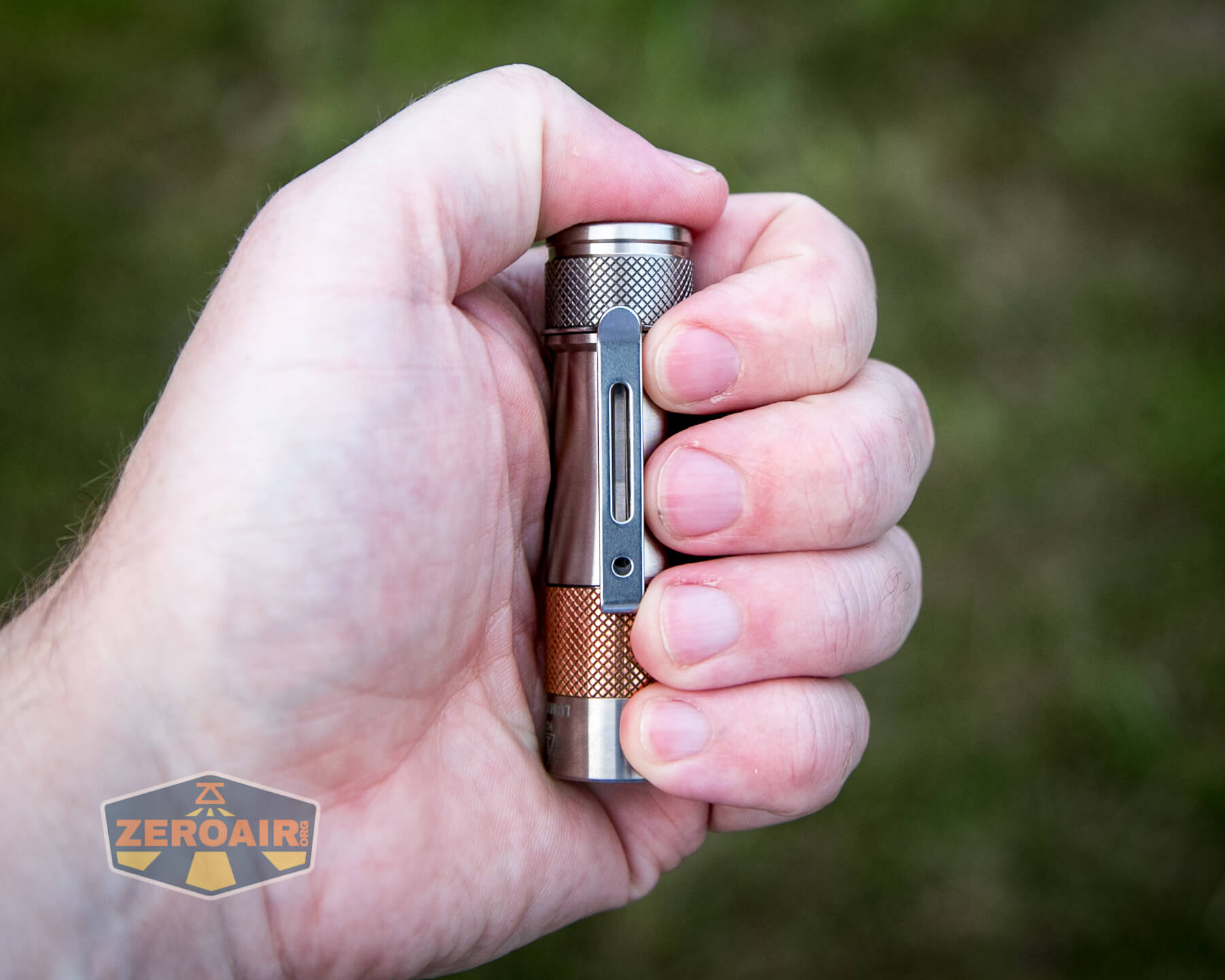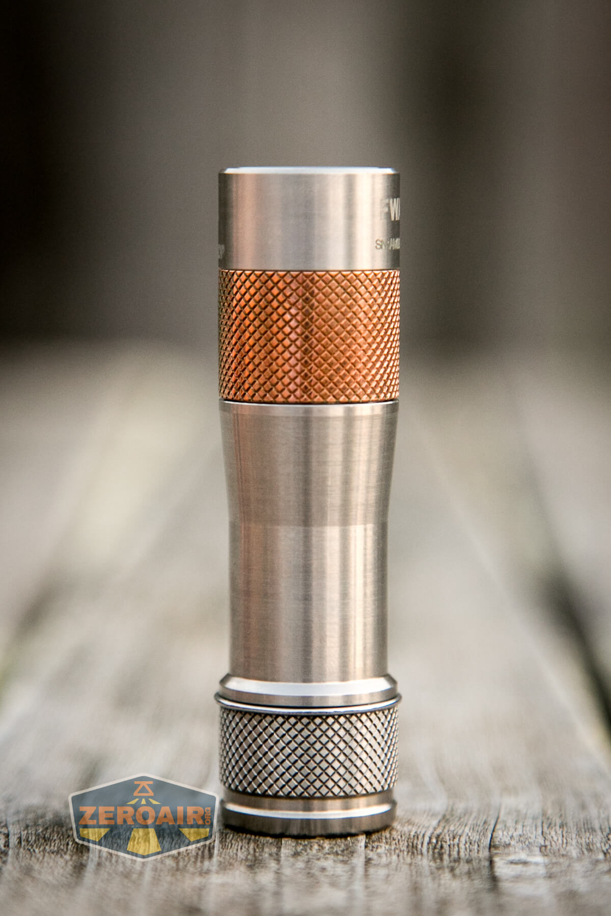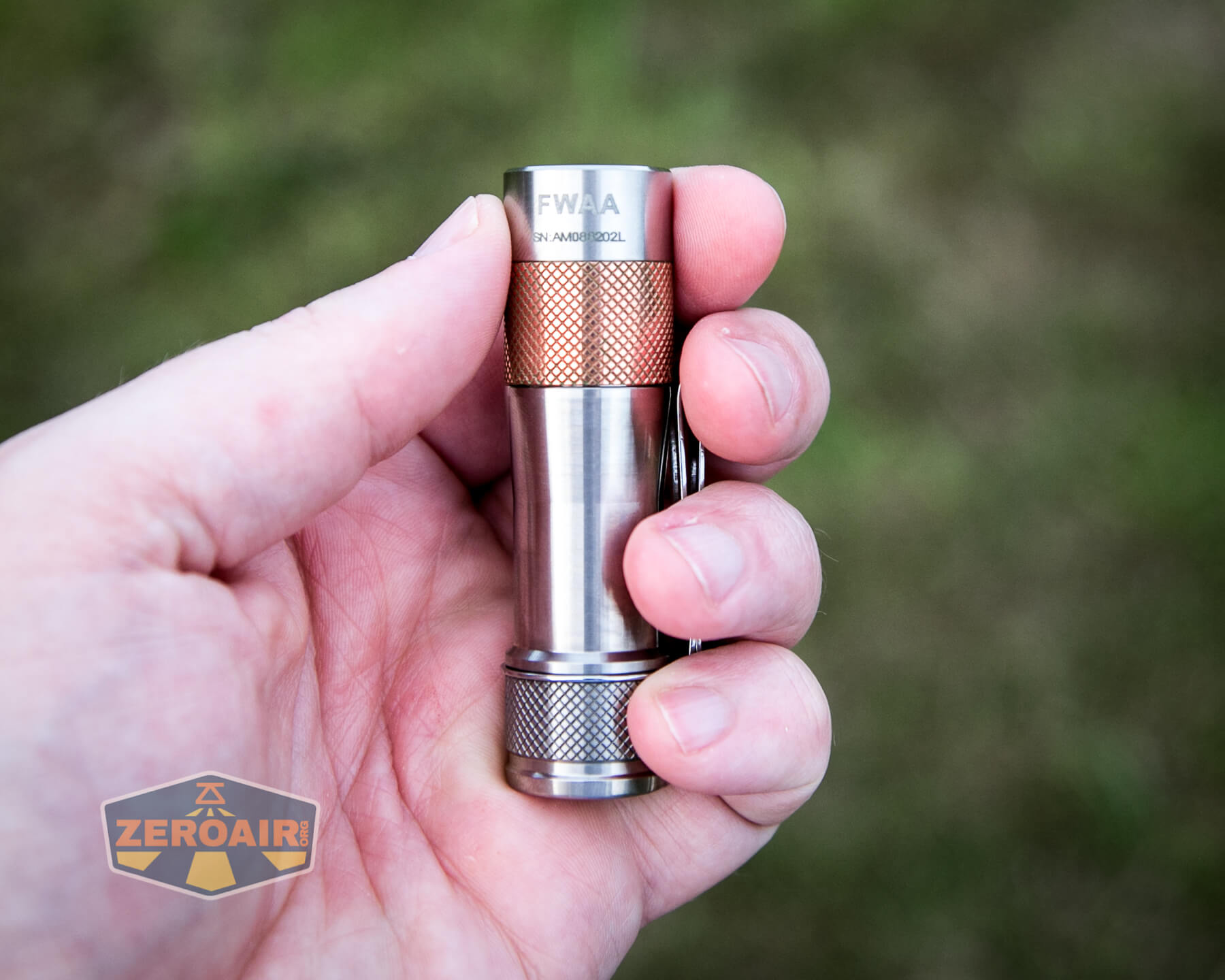 The build quality here on this Lumintop FWAA TiCU 14500 flashlight is not unlike the other FWAA flashlights. It’s very good; it’s a refined product. In this case, we see titanium and copper being used, which is a great choice for style and performance.