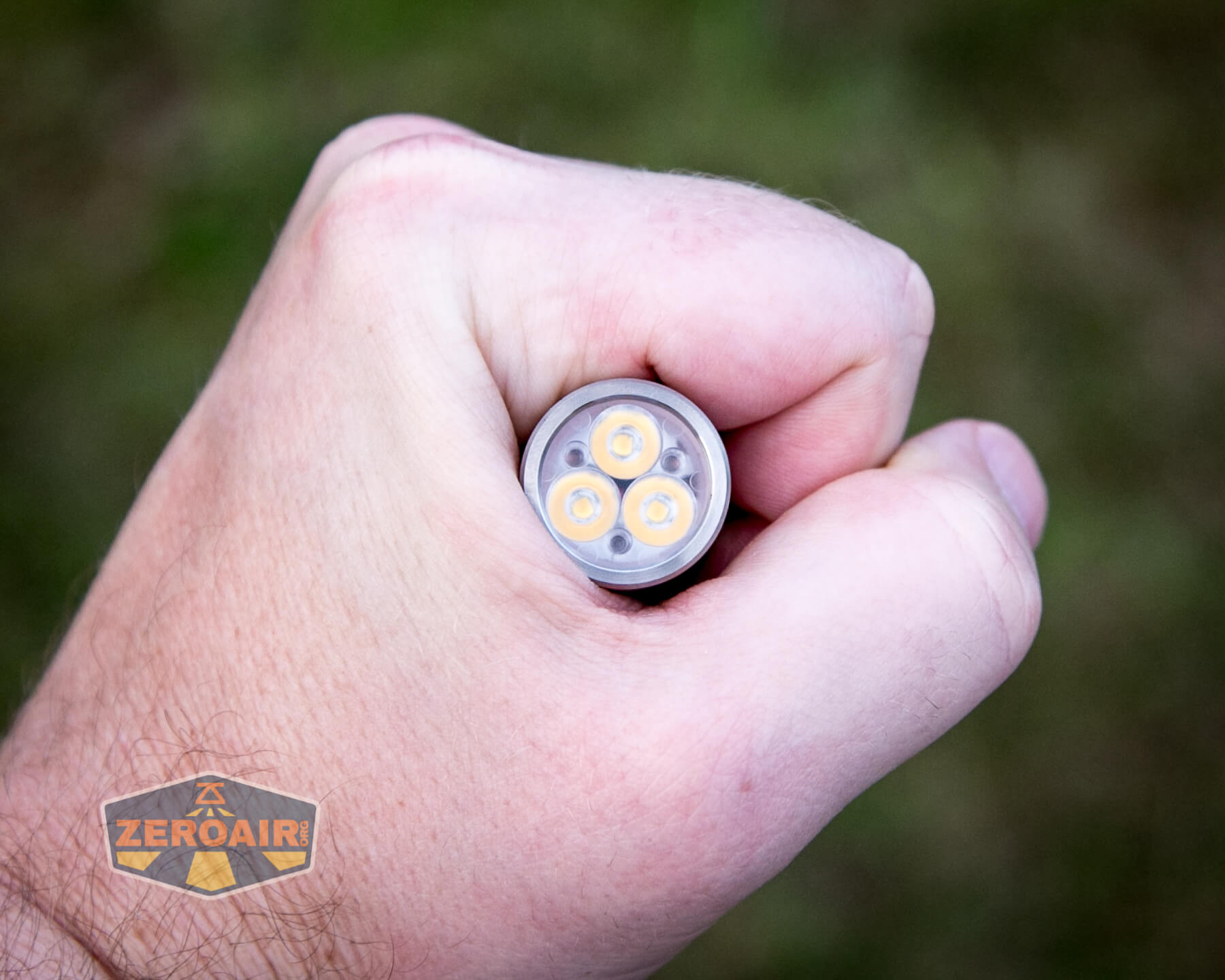 This is a triple emitter light – there are three emitters. Mine is a Luminus SST-20 version in 4000K. It’s what I recommended you purchase after my previous two FWAA reviews, which were both Nichia.