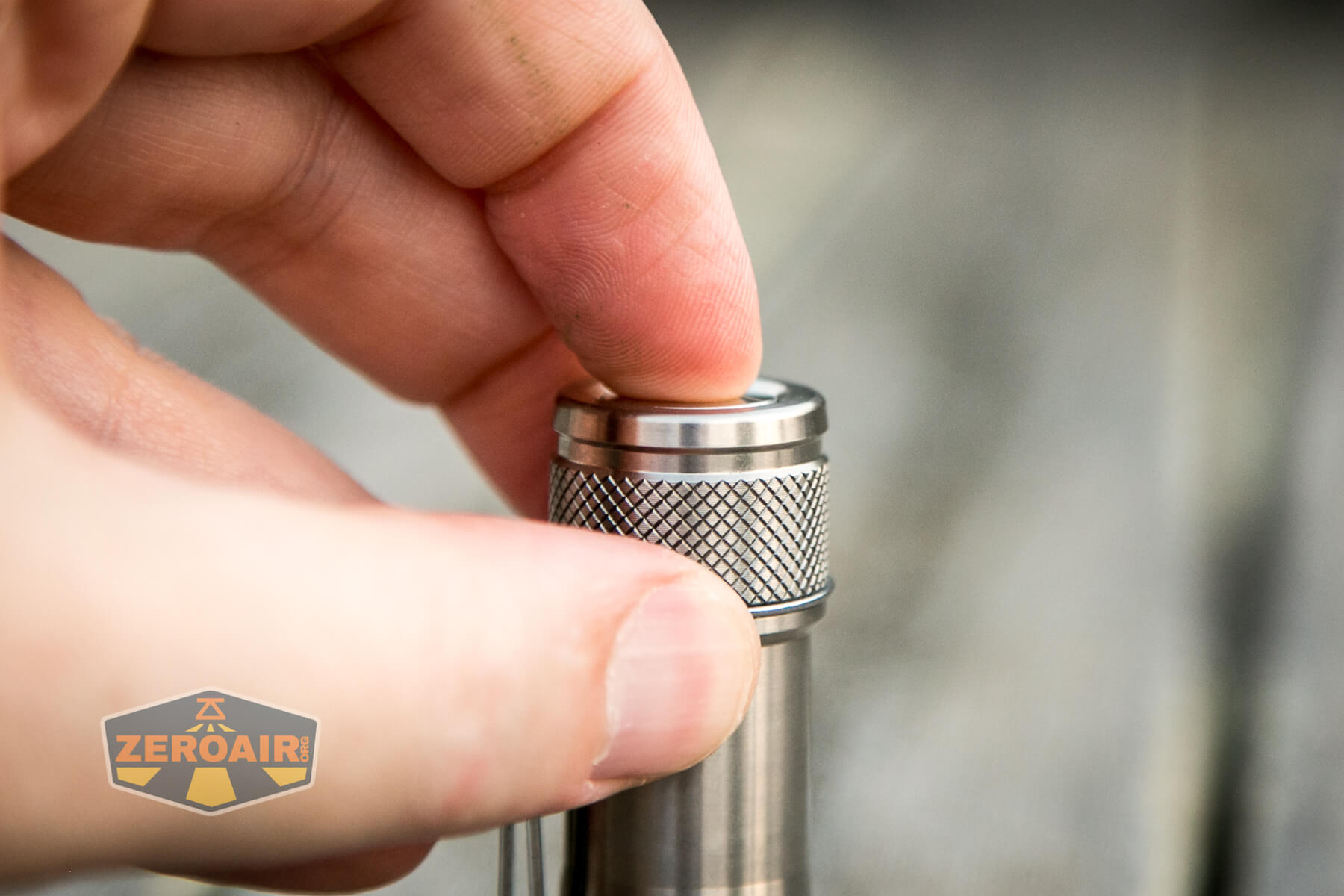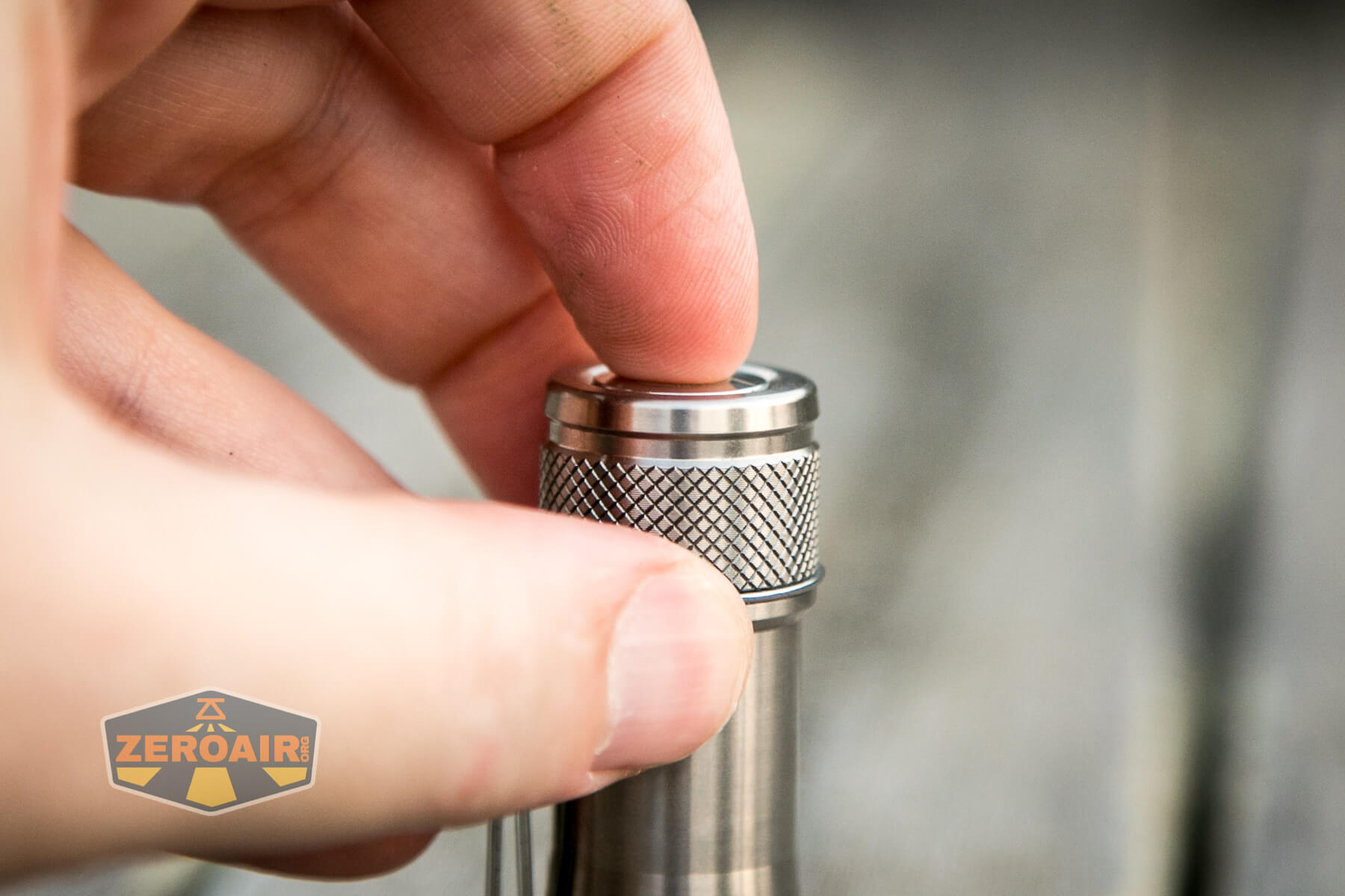 There’s a single switch for interacting with the Lumintop FWAA 14500 flashlight. It’s an e-switch, with a big metal button.