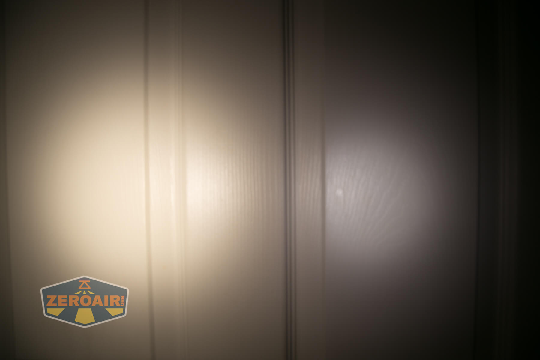Here’s the test light with the venerable Convoy S2+. Mine’s a custom “baked” edition Nichia 219b triple. A very nice 18650 light.