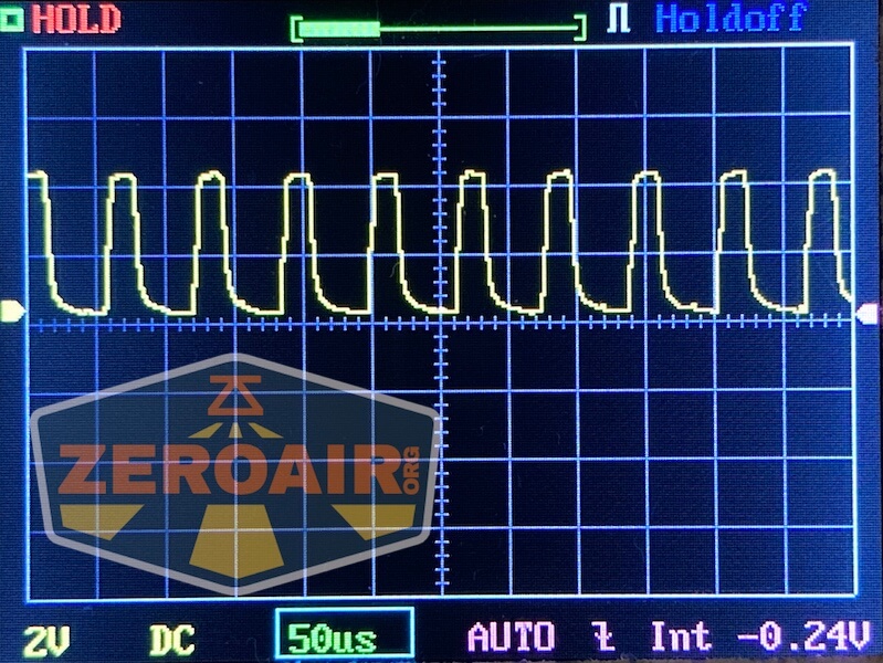 Then there’s the Ultrafire WF-602C flashlight, which has some of the worst PWM I’ve seen. It’s so bad that I used a post about it to explain PWM! Here are multiple timescales (10ms, 5ms, 2ms, 1ms, 0.5ms, 0.2ms) to make comparing this “worst” PWM light to the test light easier. That post also explains why I didn’t test the WF-602C at the usual 50us scale.