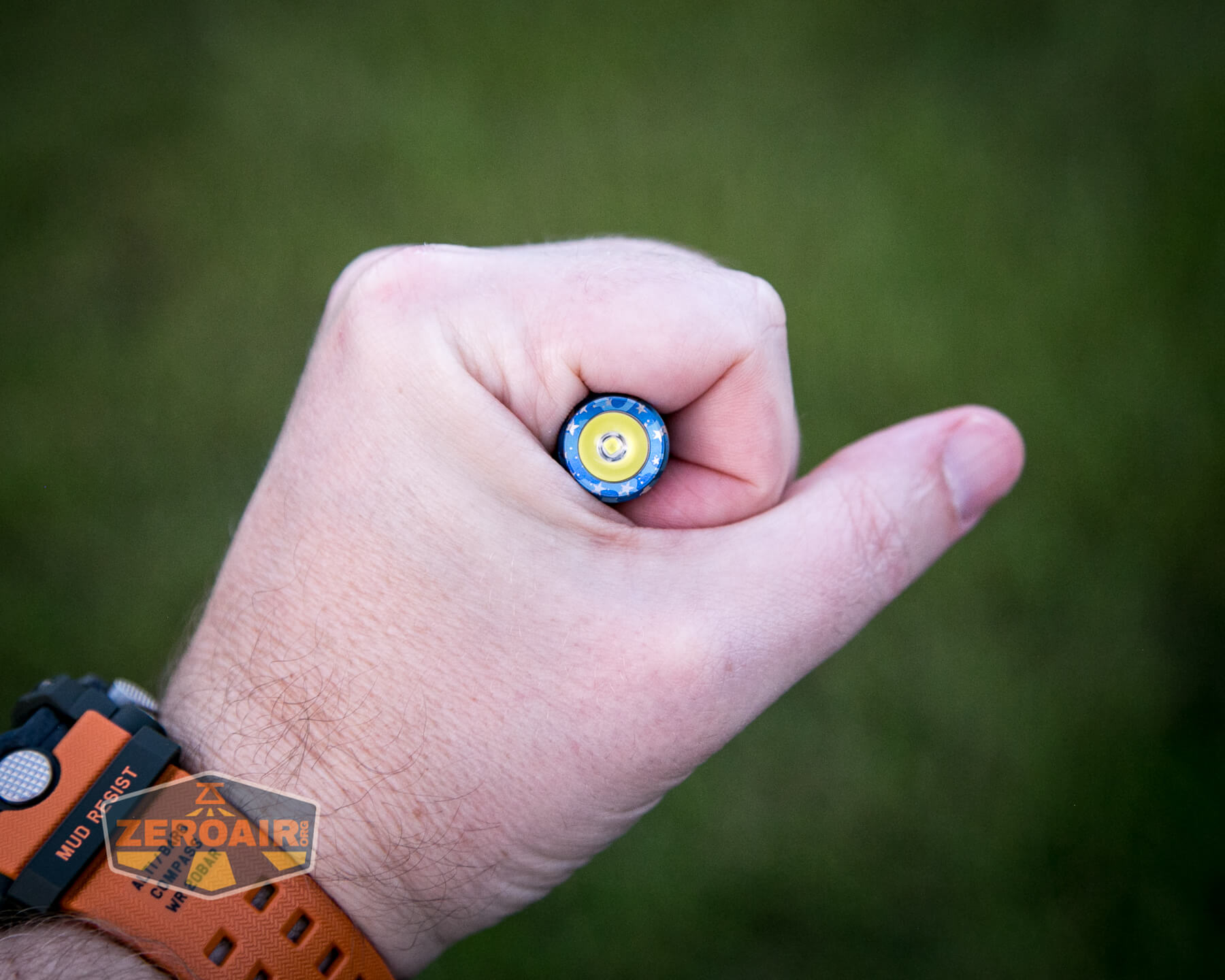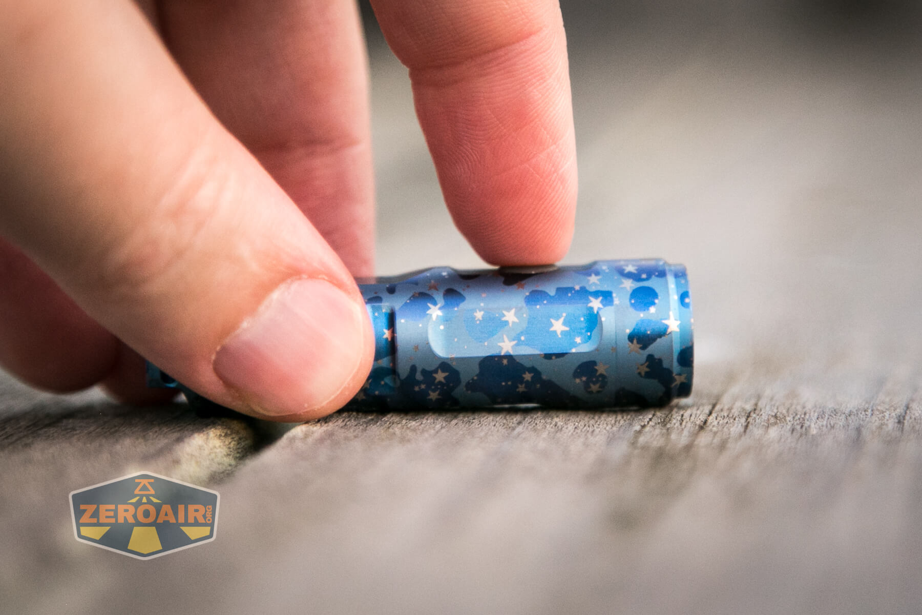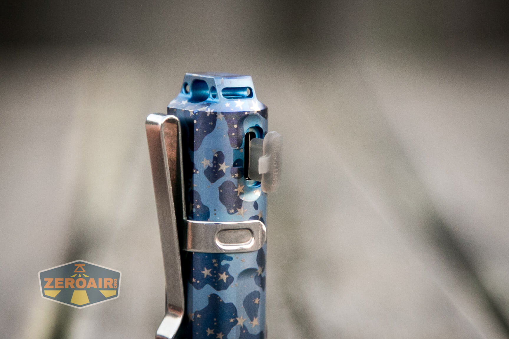 There’s a single side switch for operating the RovyVon Aurora A11 Titanium flashlight. It’s a clicky indicating side e-switch. Despite how it looks, it’s still a silicone switch cover.