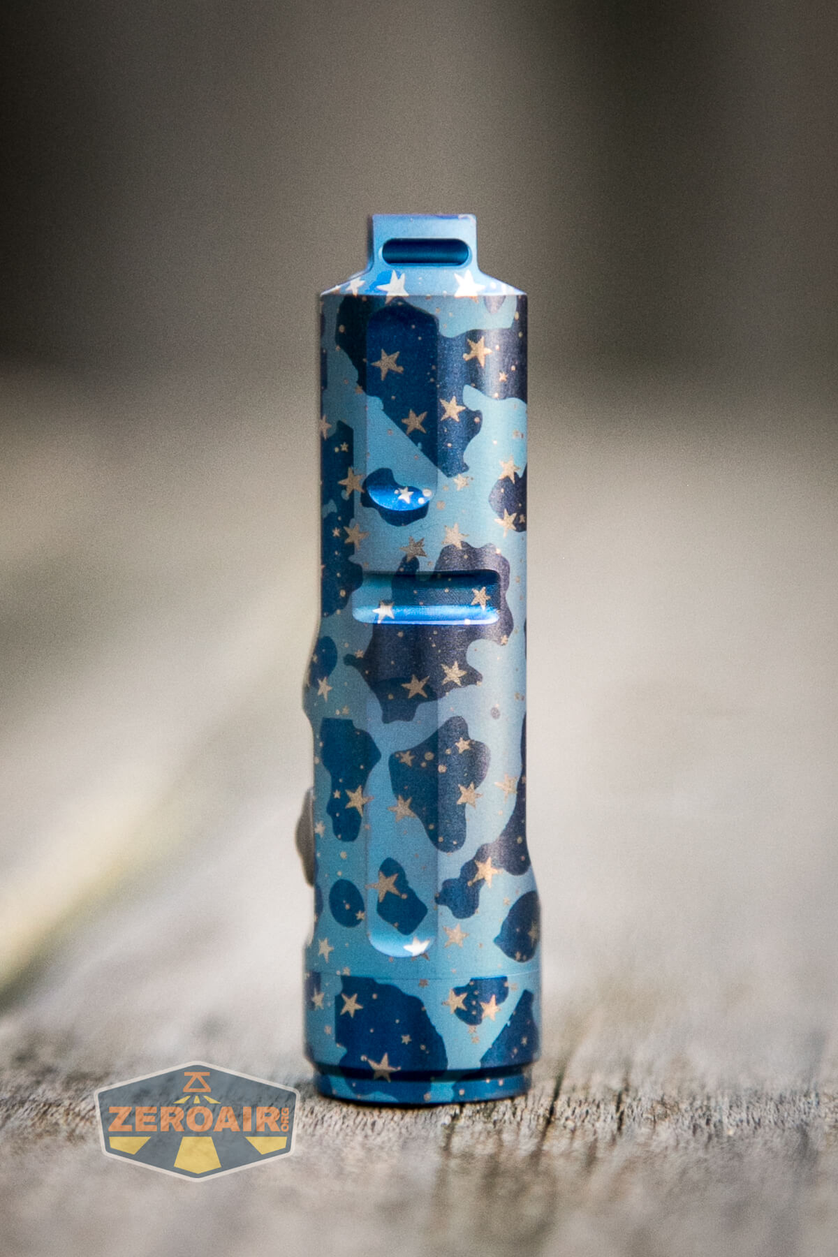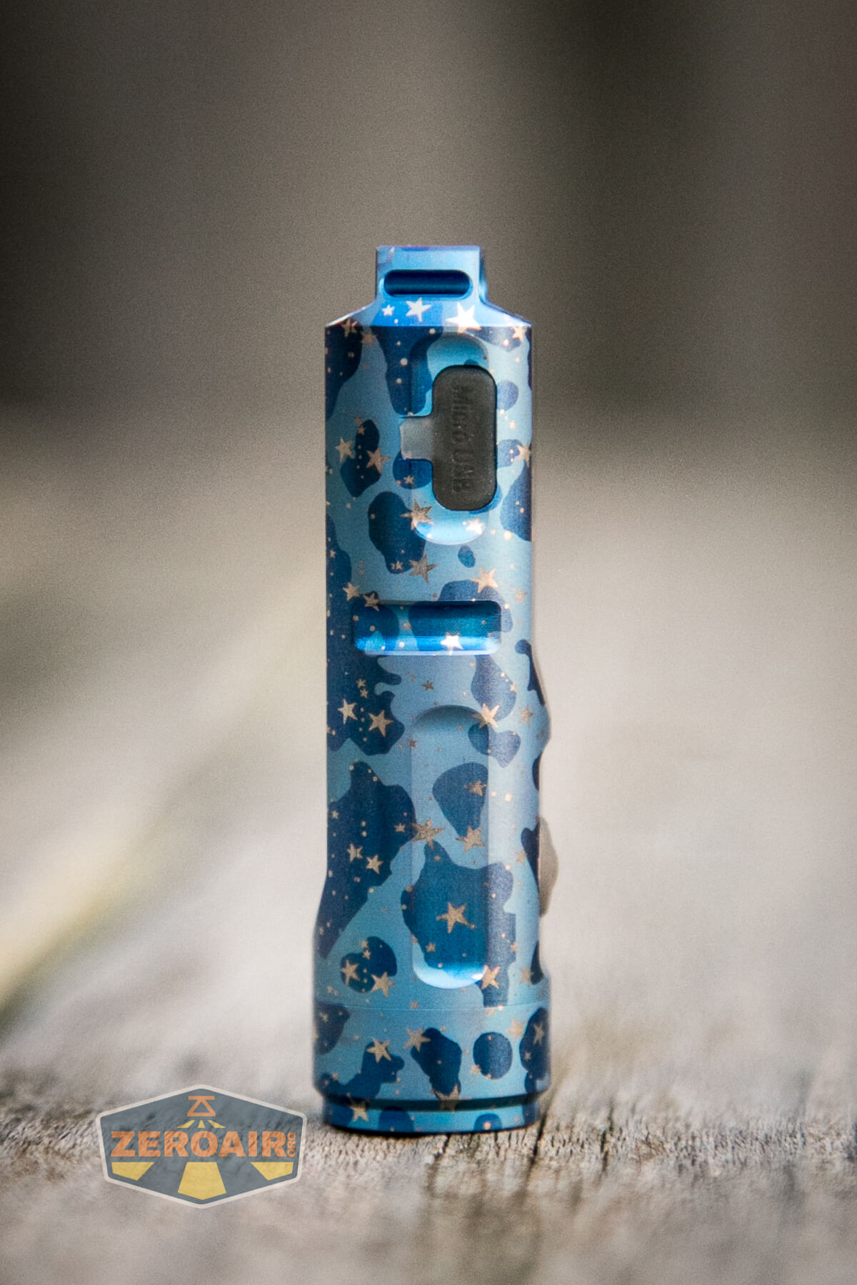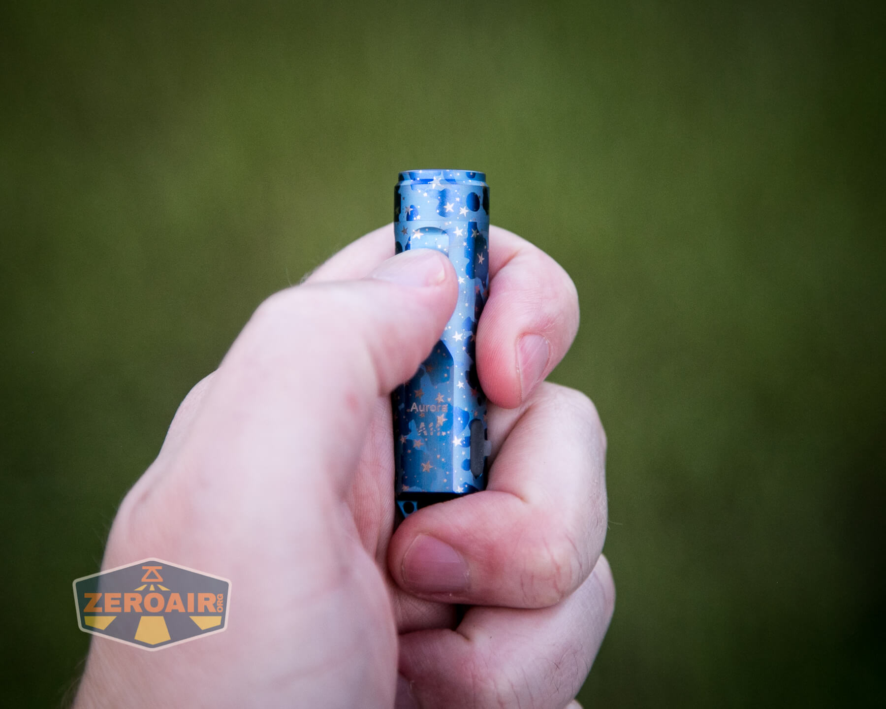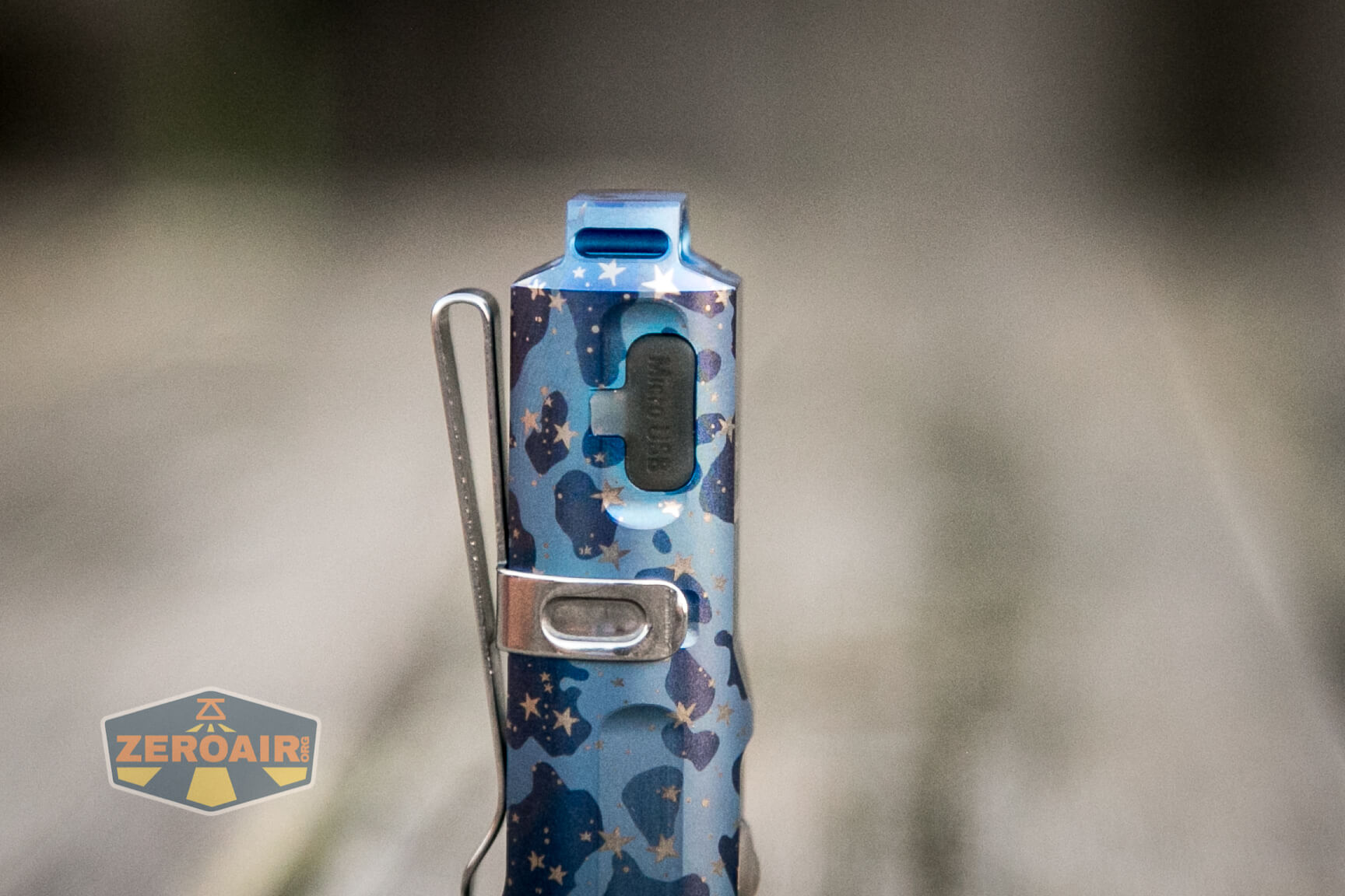 There’s a single side switch for operating the RovyVon Aurora A11 Titanium flashlight. It’s a clicky indicating side e-switch. Despite how it looks, it’s still a silicone switch cover.