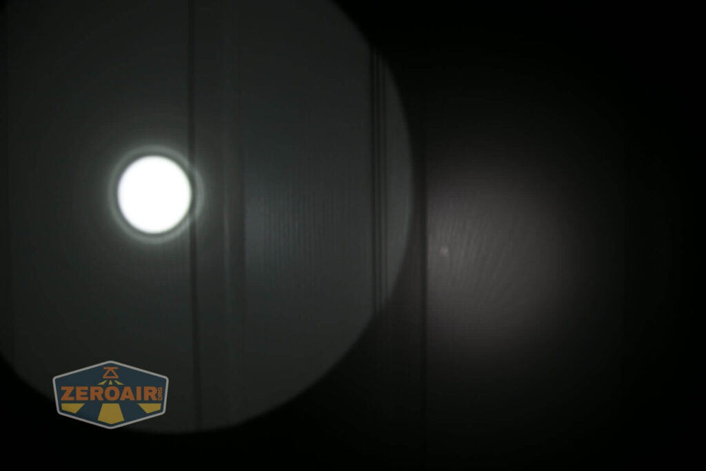 Here’s the test light with the venerable Convoy S2+. Mine’s a custom “baked” edition Nichia 219b triple. A very nice 18650 light.