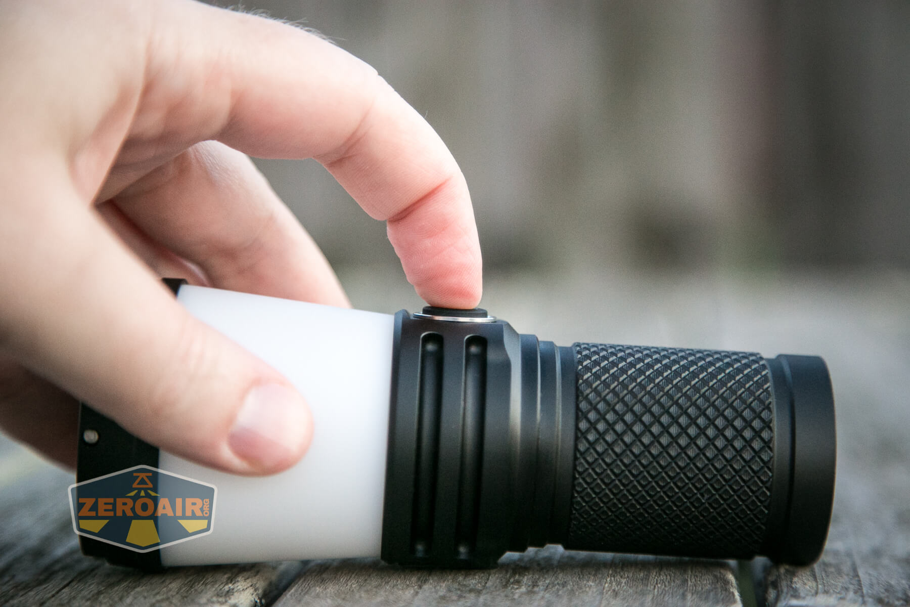 Lumintop uses an e-switch on the CL2 Lantern. It’s a fairly big switch and has the bunny logo.