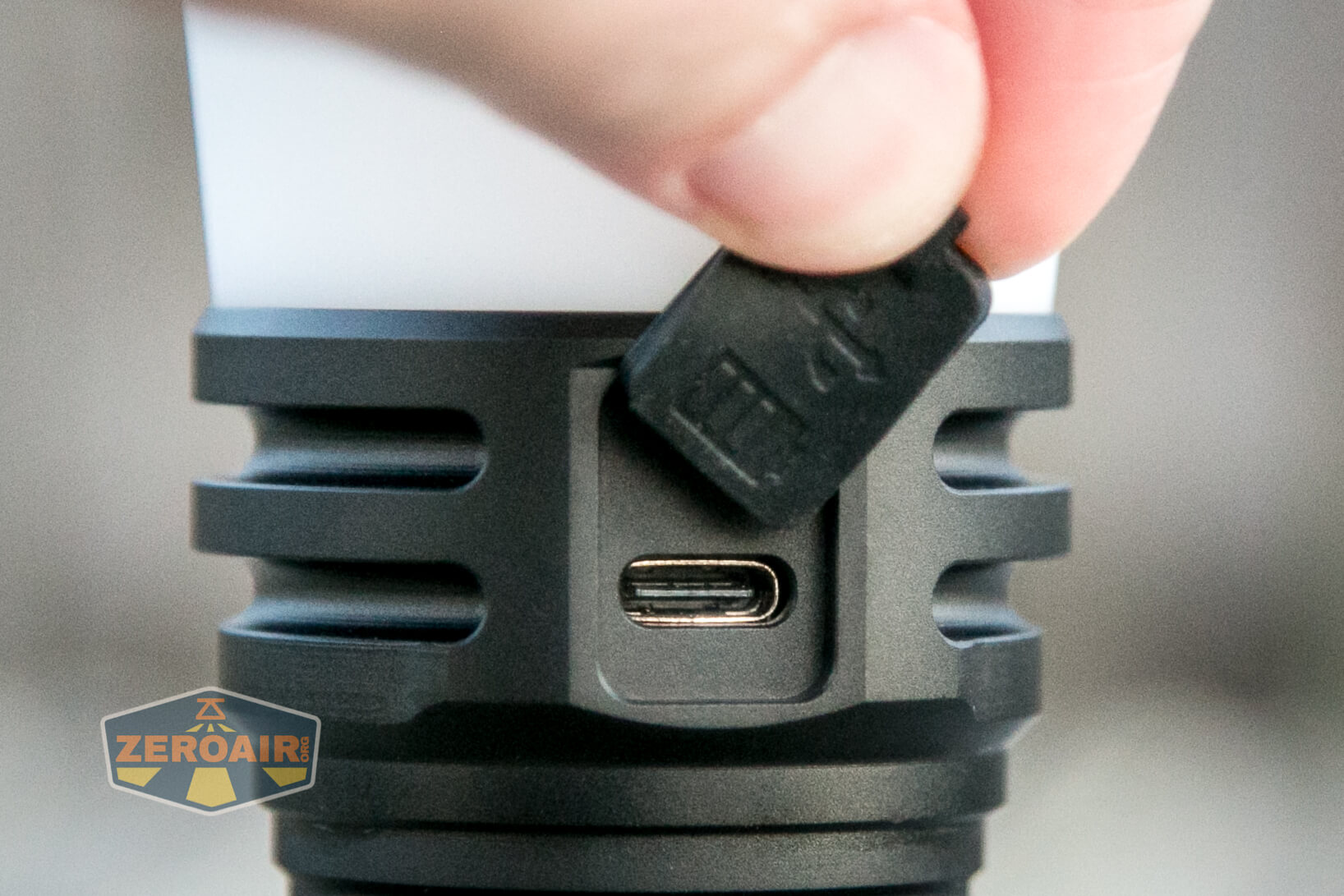 Built-in charging is a nice feature of the Lumintop CL2 Lantern. The charging is by way of a USB-C port on the side.