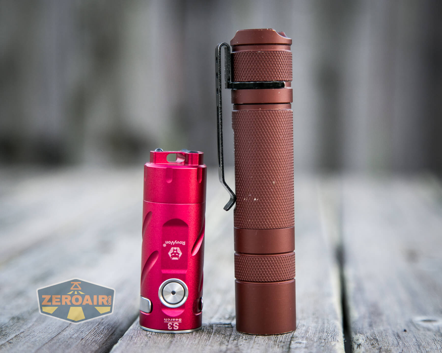 A few versions of the RovyVon S3 flashlight are available. First, there is aluminum: red and black. Also available is titanium, with just one finish option.