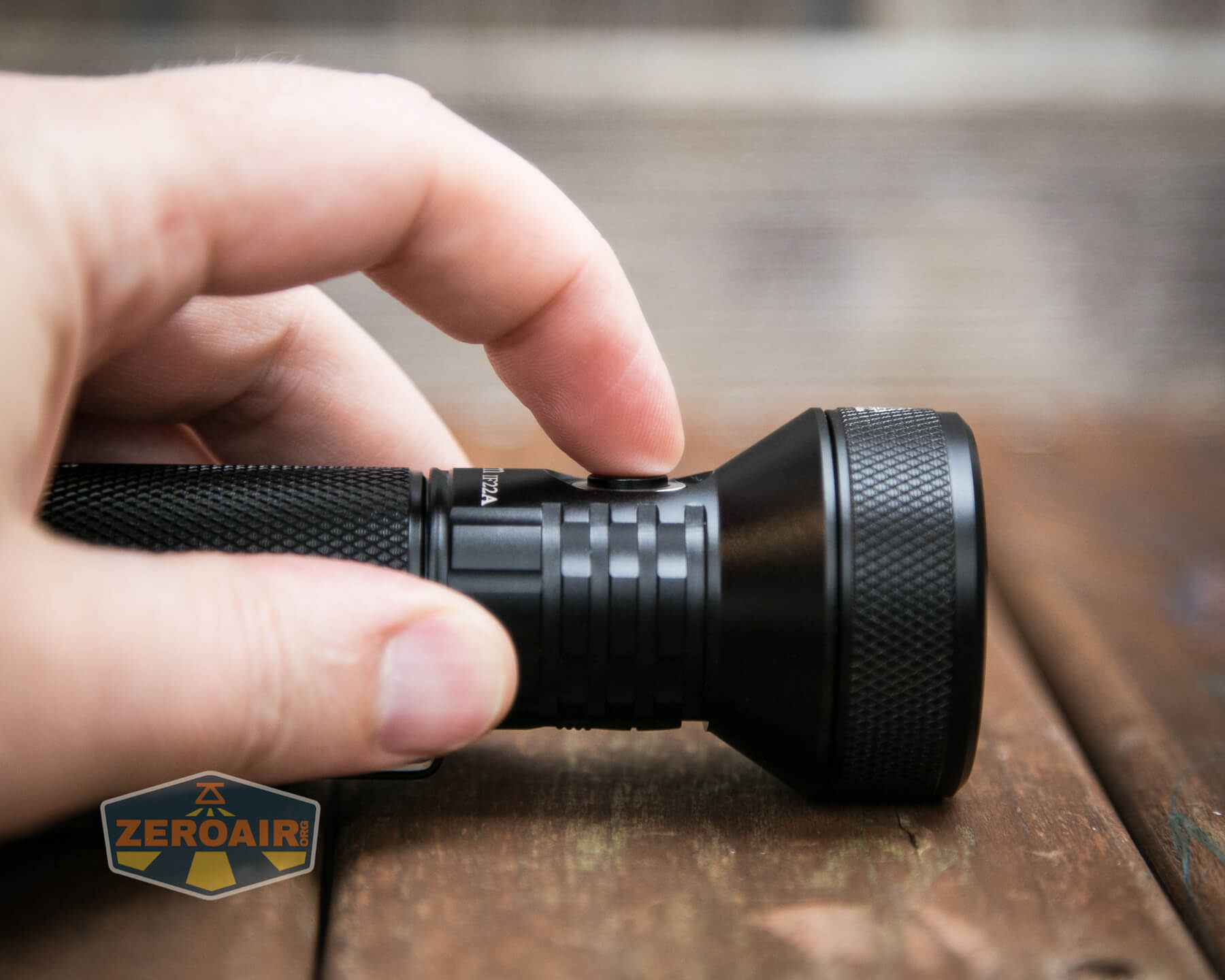 The Sofirn IF22A flashlight is controlled by a single switch. It’s an e-switch on the side of the head.