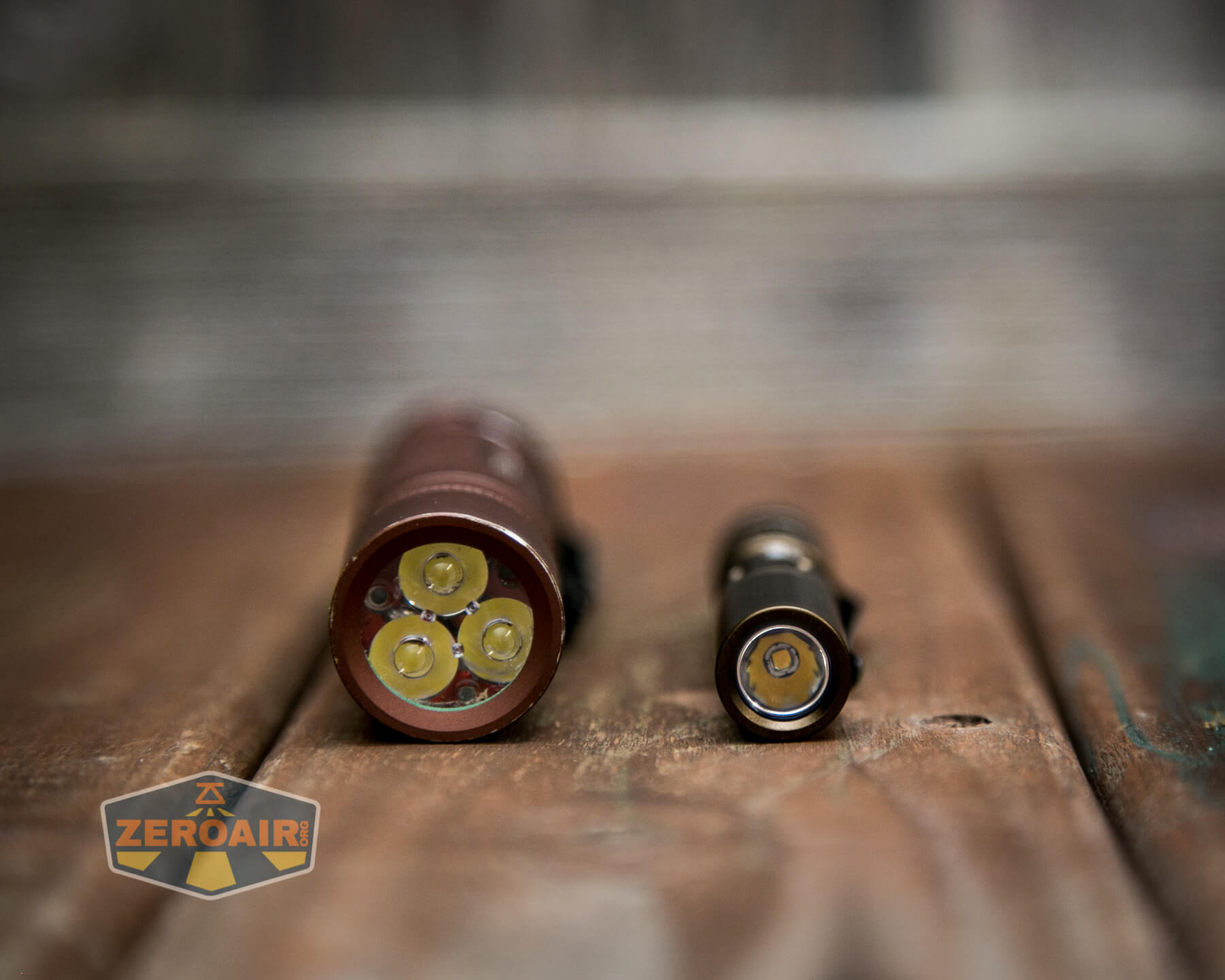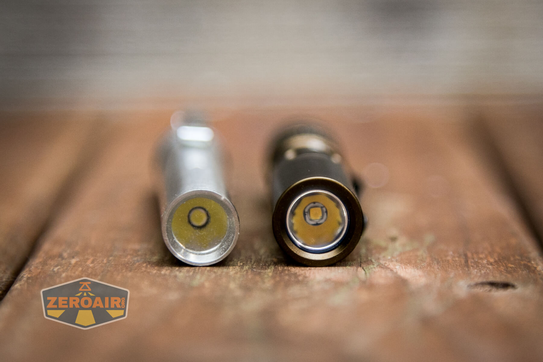 And here’s the light beside my custom-engraved TorchLAB BOSS 35, an 18350 light. I reviewed the aluminum version of that light in both 35 and 70 formats.