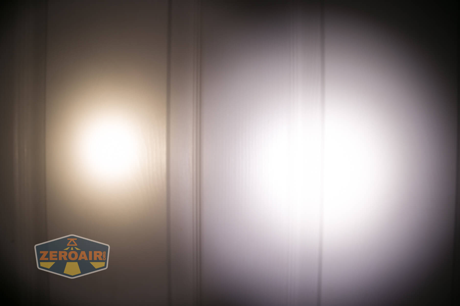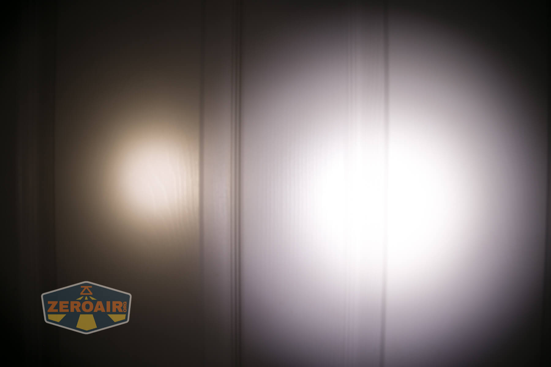 These beamshots always have the following settings: f8, ISO100, 0.3s shutter, and manual 5000K exposure. These photos are taken at floor level, and the beam hits the ceiling around 9 feet away. These photos are in the same order as the PWM graphs above. This order is not what you can click through and experience… But the lowest output is on the left and the highest on the right.