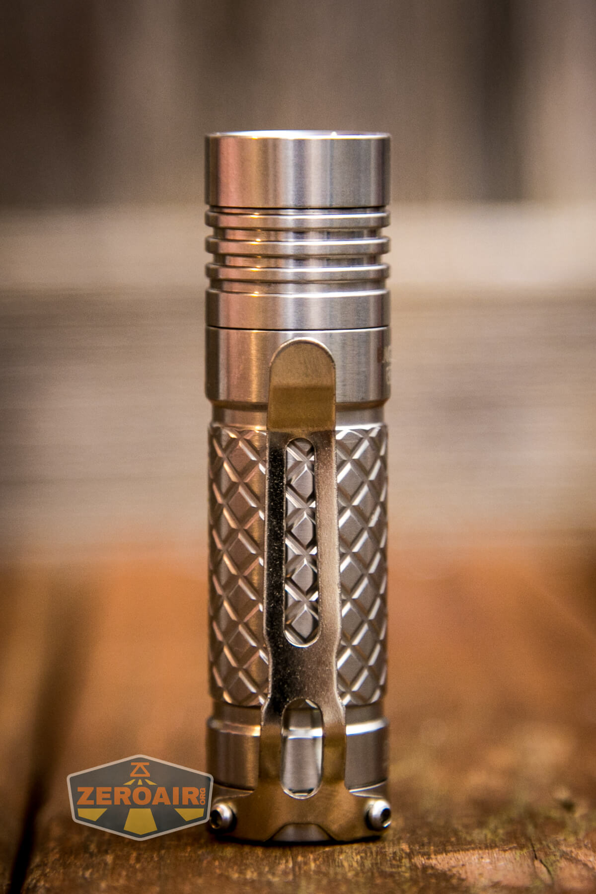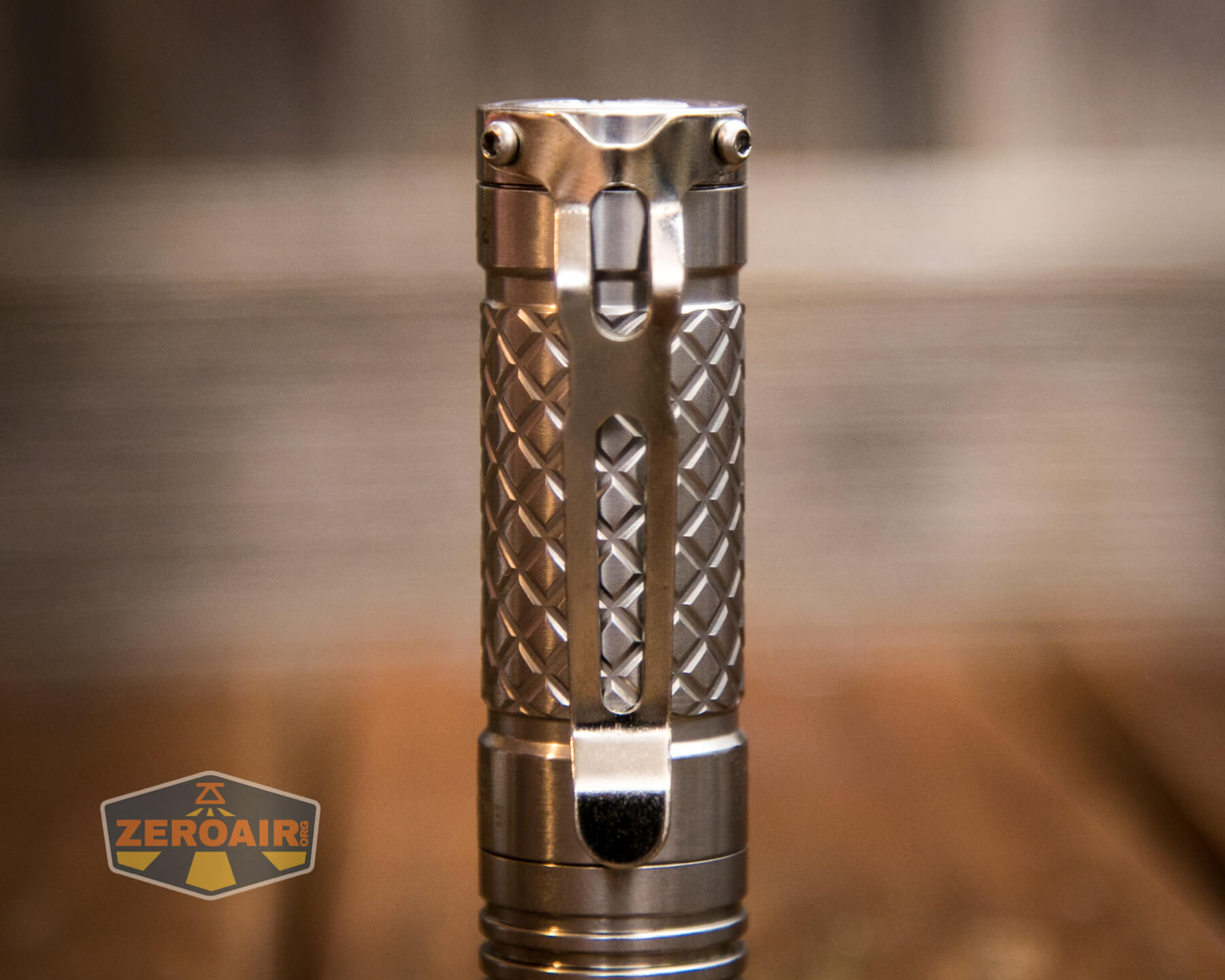 This Eagtac D3C Titanium flashlight has a screw-in pocket clip. It’s not a standard hole spacing pocket clip, but it’s fairly common from Eagtac.