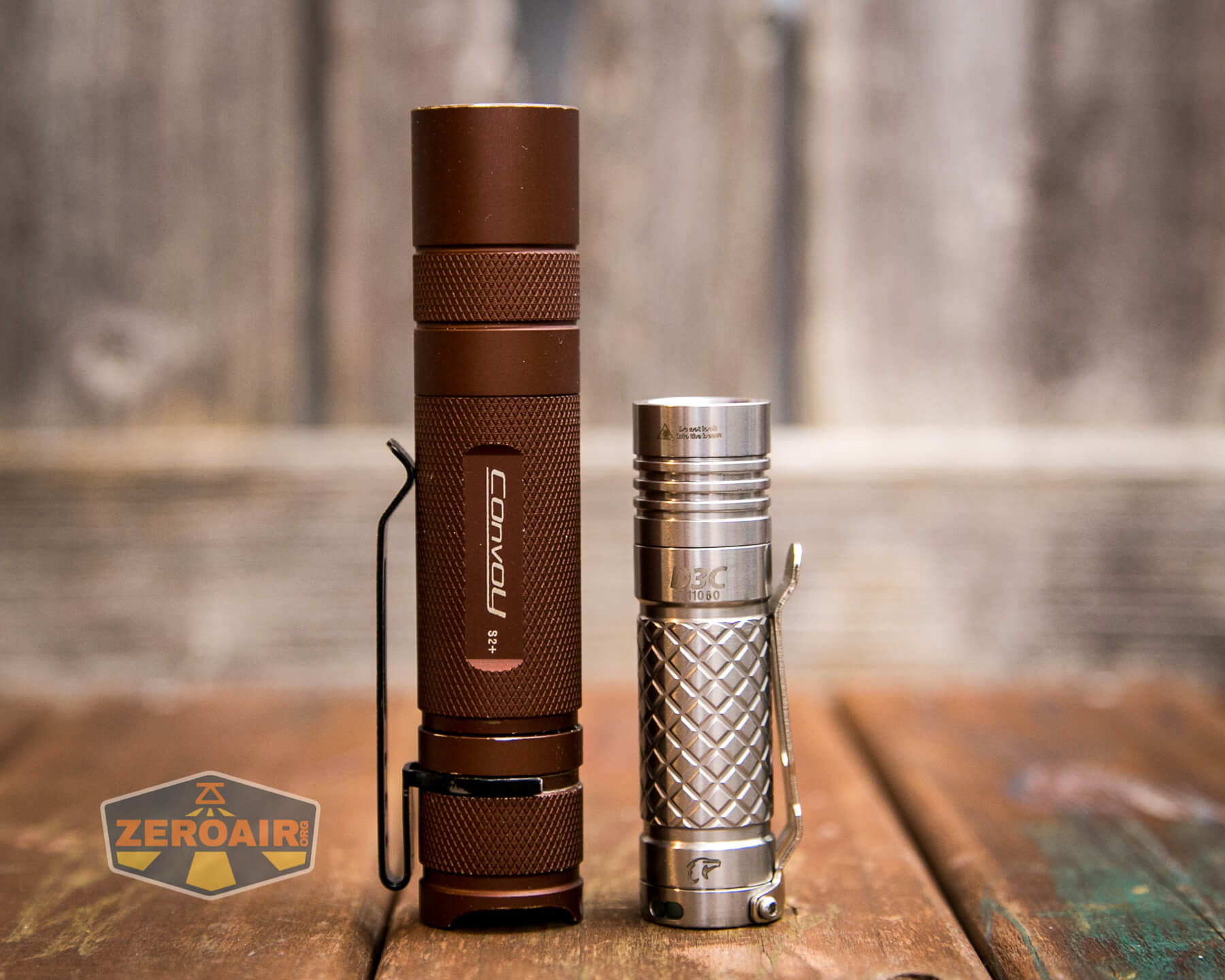 And here’s the light beside my custom-engraved TorchLAB BOSS 35, an 18350 light. I reviewed the aluminum version of that light in both 35 and 70 formats.