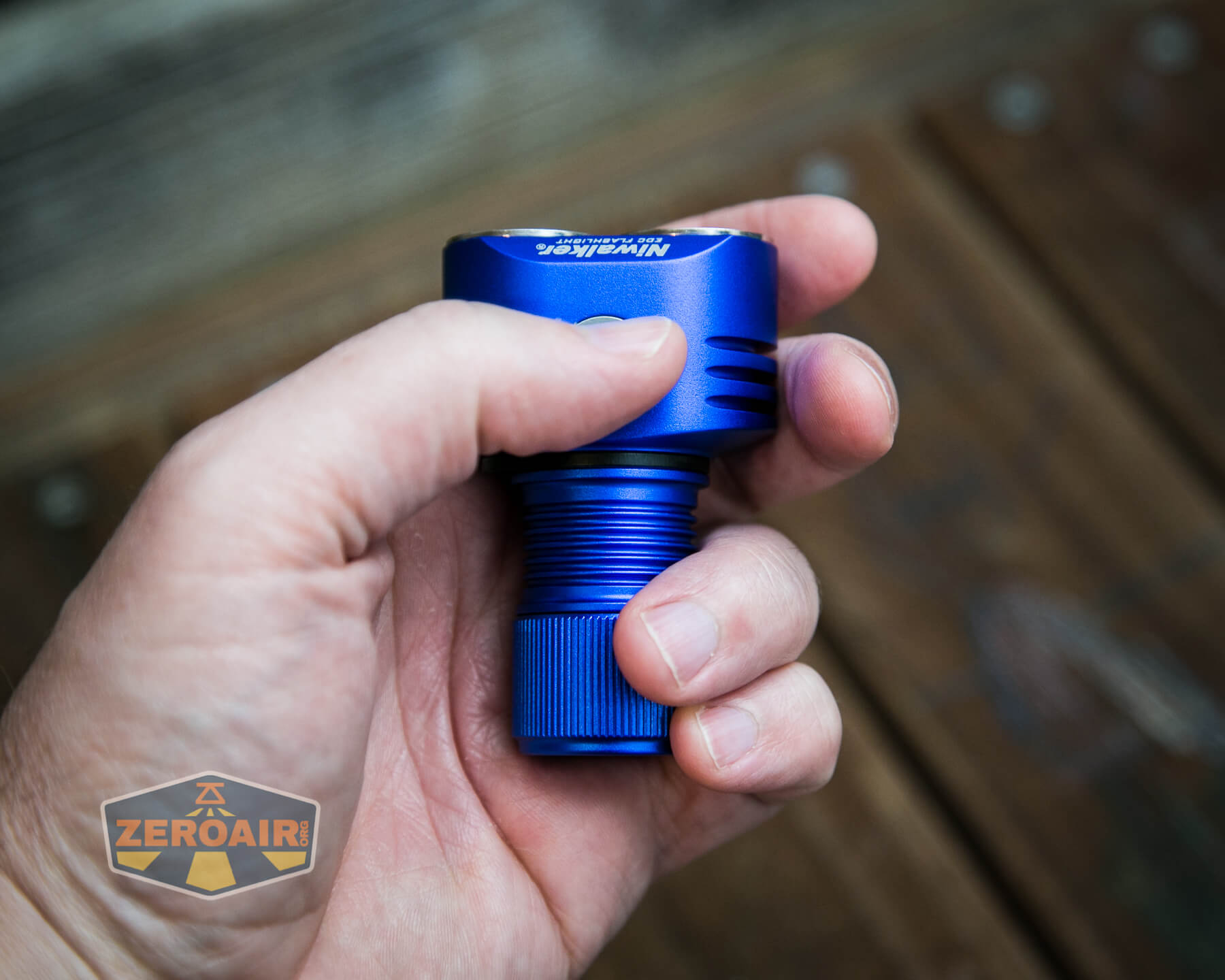 What wasn’t immediately evident to me from photos of the Niwalker ET Mini V2 flashlight was that the head actually has some thickness in the…. “between switch and charge cover” area. That’s really probably a good thing since that’s more thermal mass. It does mean that the head isn’t “flat” though.