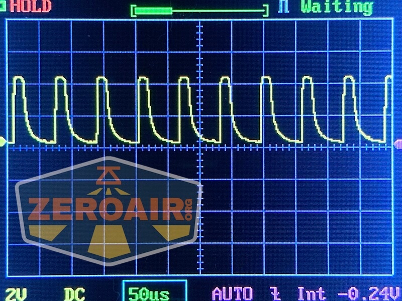 Then there’s the Ultrafire WF-602C flashlight, which has some of the worst PWM I’ve seen. It’s so bad that I used a post about it to explain PWM! Here are multiple timescales (10ms, 5ms, 2ms, 1ms, 0.5ms, 0.2ms) to make comparing this “worst” PWM light to the test light easier. That post also explains why I didn’t test the WF-602C at the usual 50us scale.