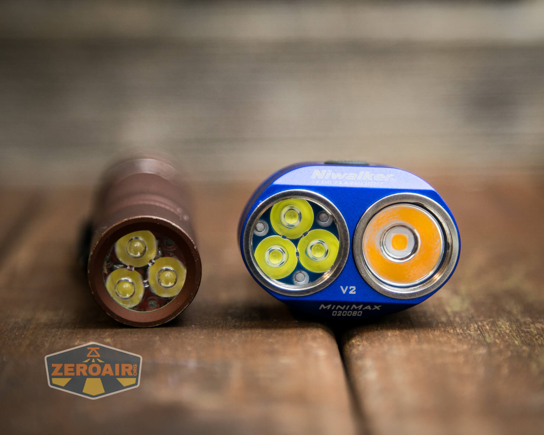 These are a couple of interesting emitter choices. Of course, I’d rather have something warmer than 6000K, but disregarding that, it’s a nice setup still. The triple provides high output. The single provides a nice, tight hotspot.