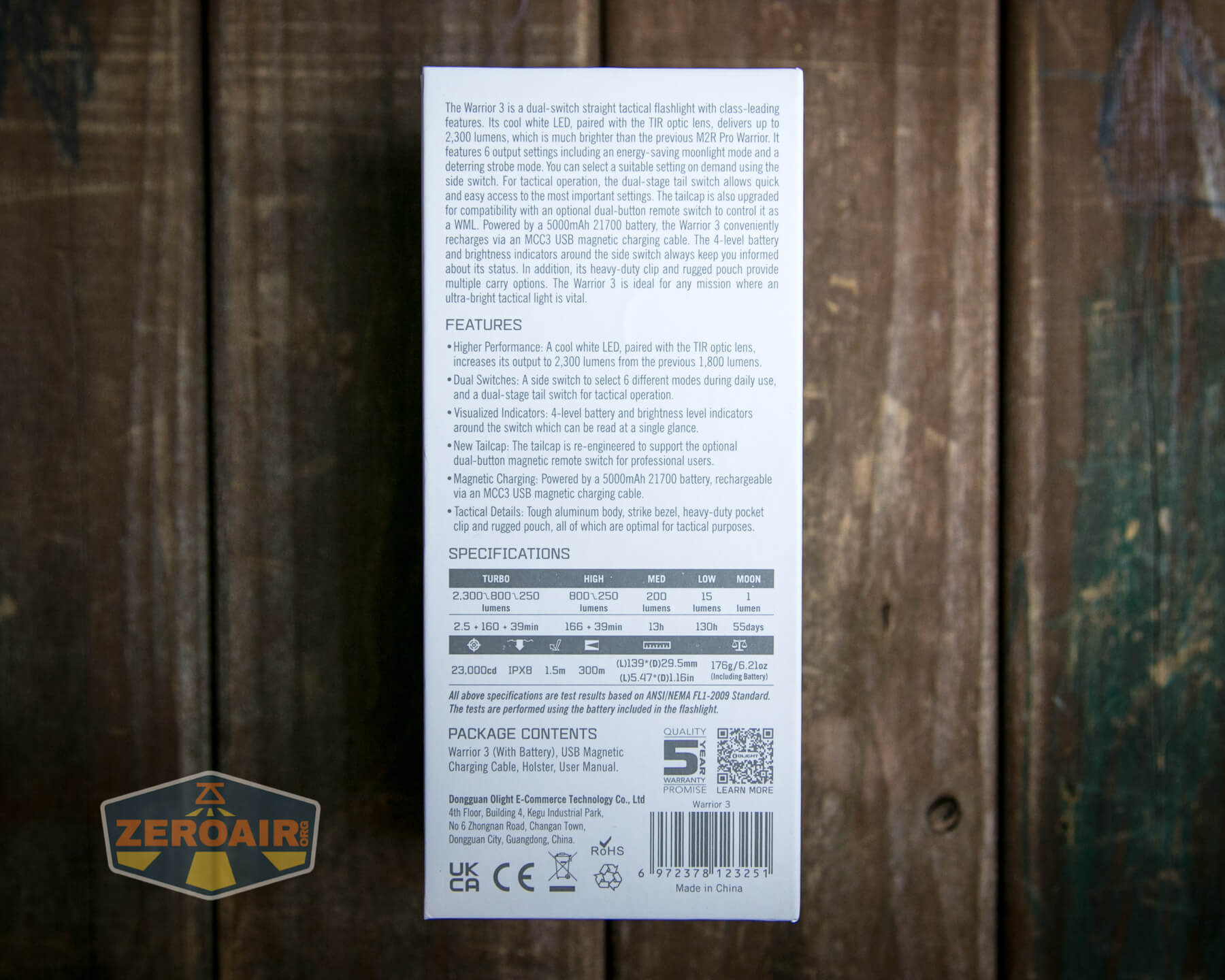 I have a couple of Olight M2R Pro Warriors, and I suppose they’re the most recent previous iteration of this Warrior lineup. The lights are quite similar in look. But different in a few features. Namely, the emitter on the Warrior 3 is cooler white.