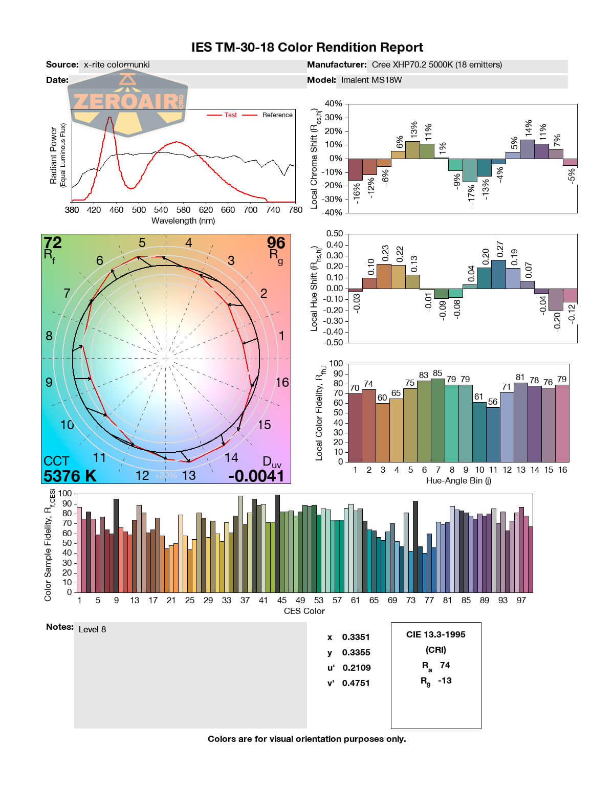 LED Color Report (CRI and CCT)