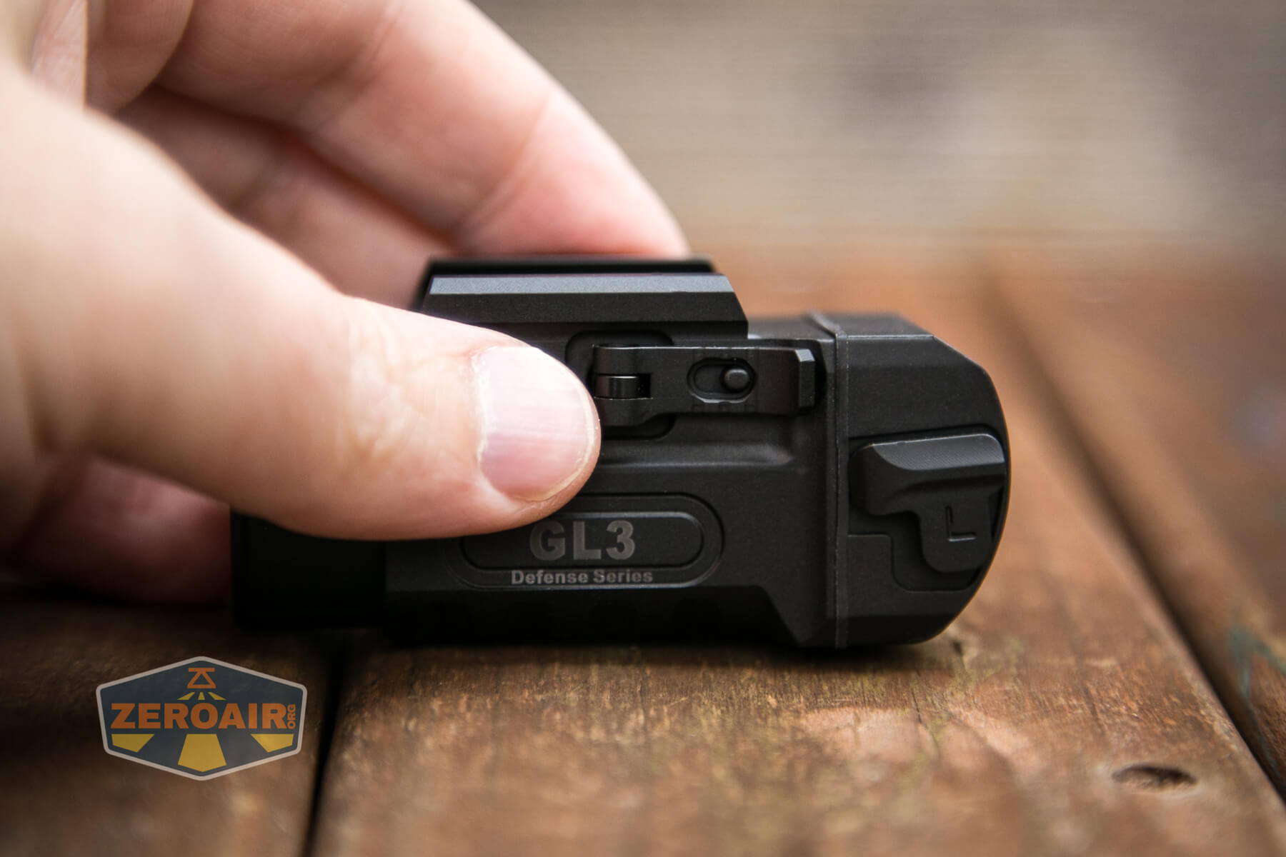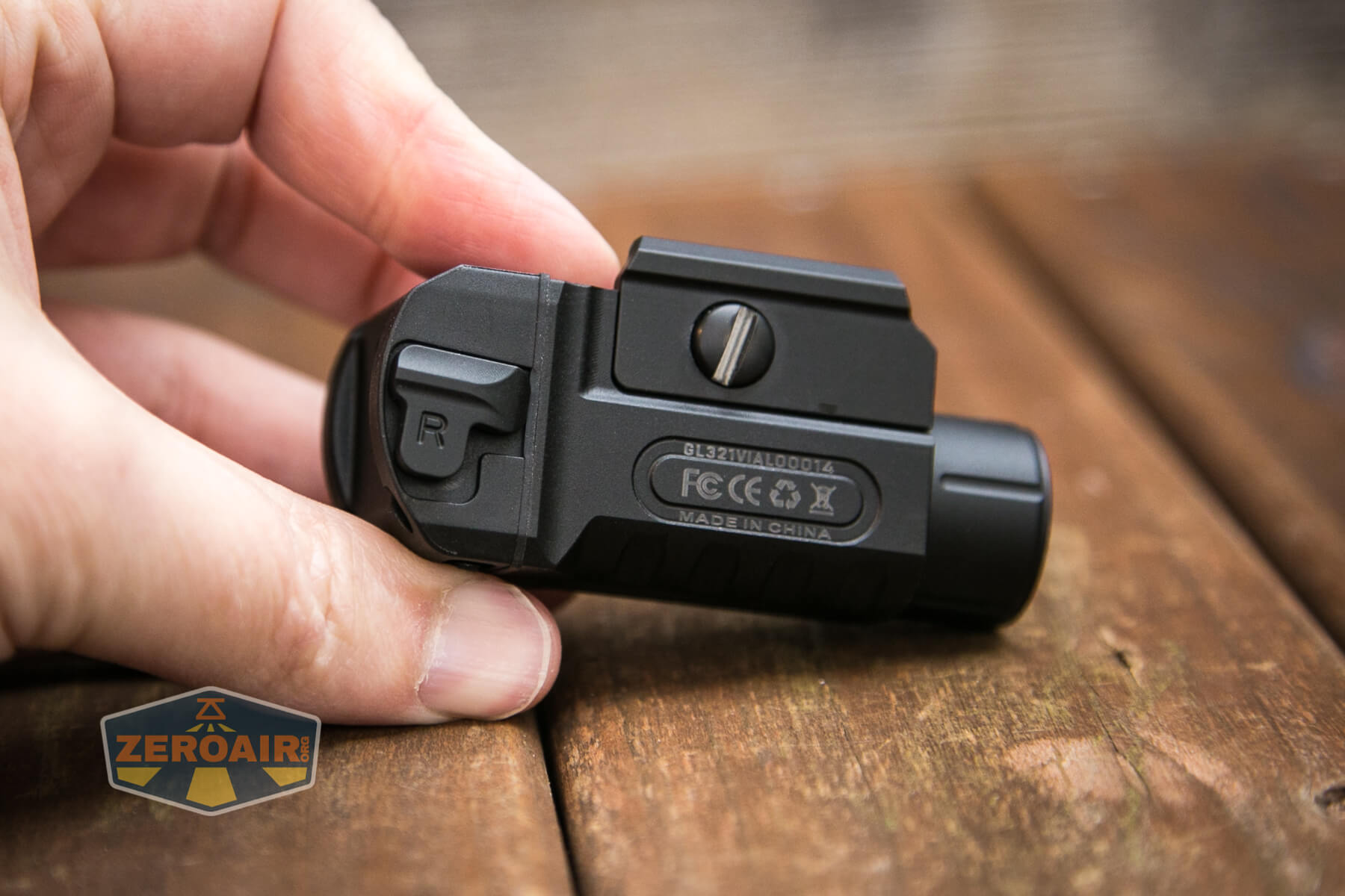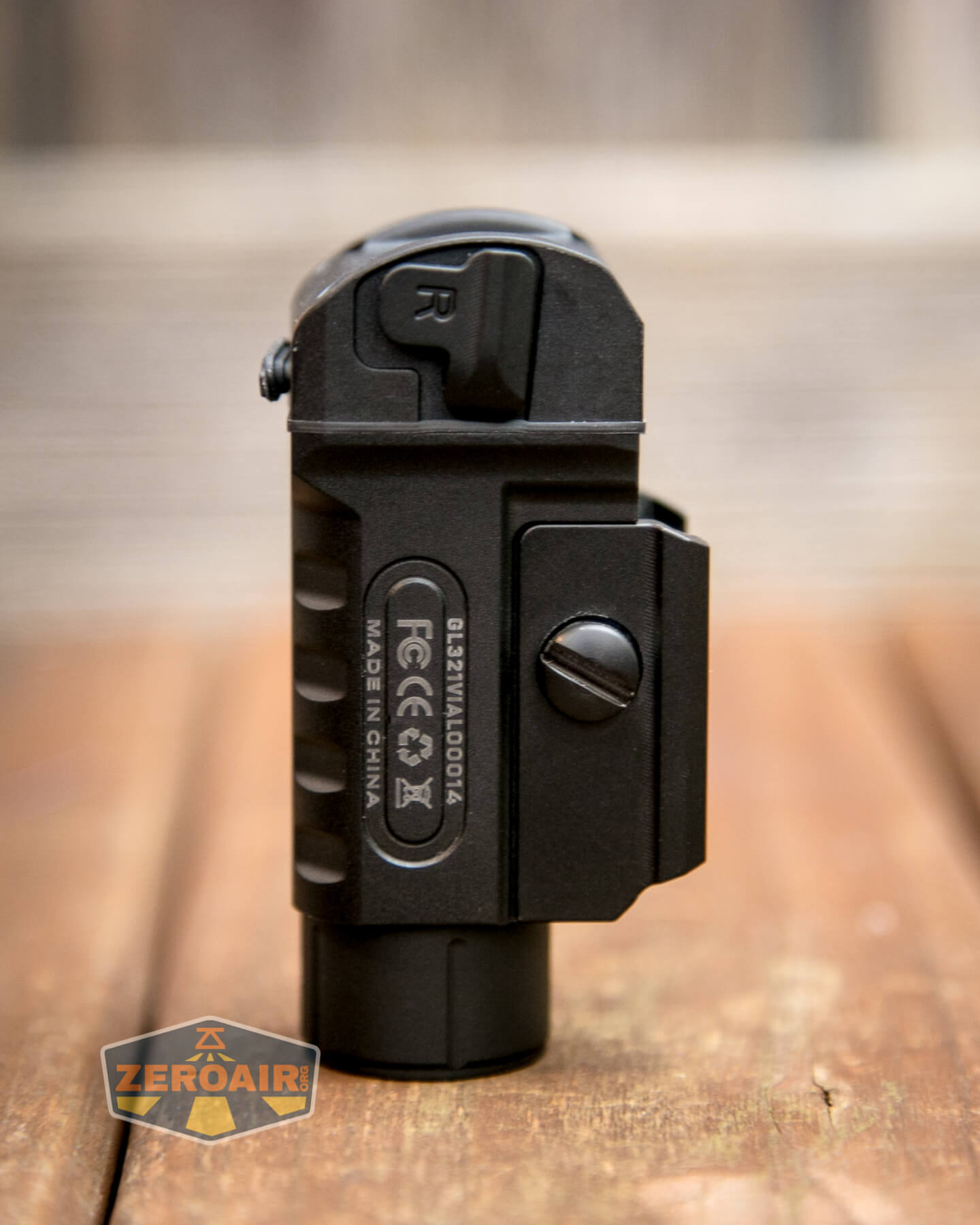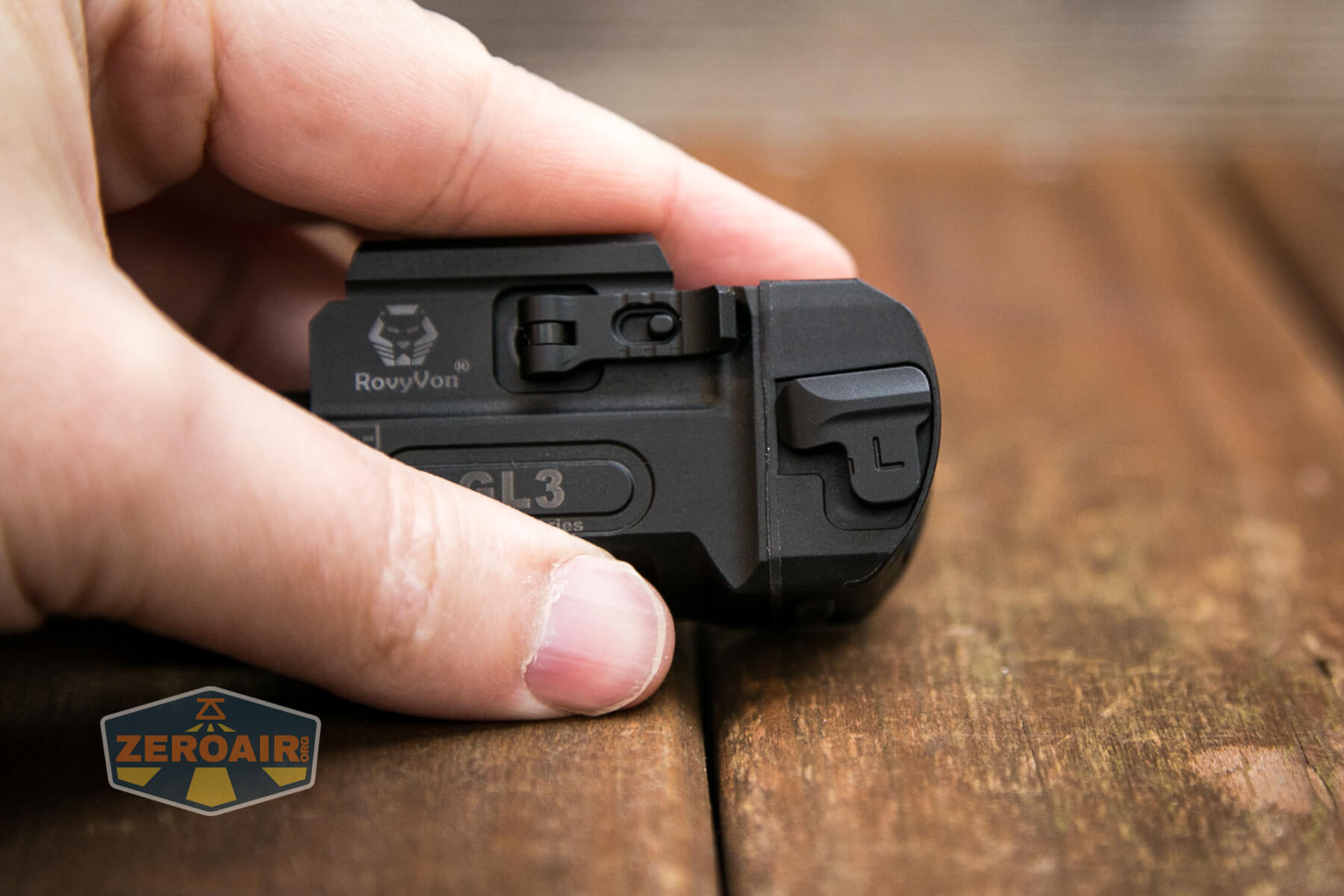 There are technically two switches on the RovyVon GL3 weapon flashlight, but they are exactly alike. This is for ambidextrous use while weapon-mounted. They’re labeled with an “R” and “L,” a detail I’m not at all sure is necessary. If you manage to install the Gl3 in such a way on your weapon that you need guidance on which finger should push the switch, then it’s possible you should not be using a weapon….