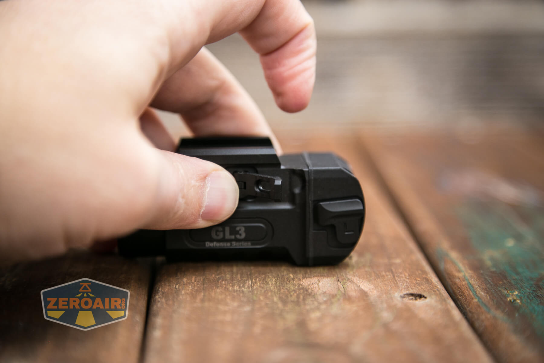 In my weapon setup, the switch was not ideal – again, this is not a WML intended for long guns. On a pistol, I think the switch placement and actuation would be just about right. These aren’t paddle switches exactly. You sort of push straight down on the back (rearmost, nearest the trigger), and when this “paddle” nears the end of travel, it presses an e-switch. It’s a fine actuation, and also quiet. The switches work in the same way.