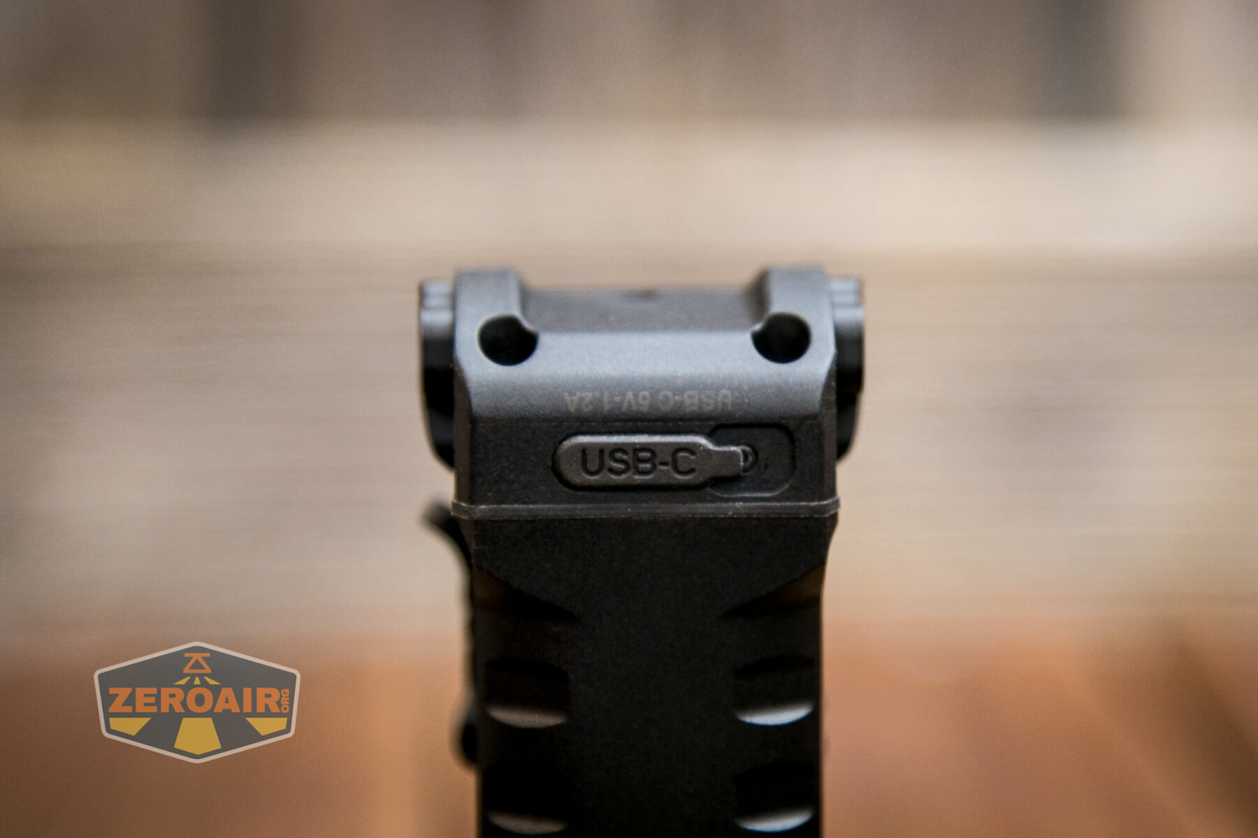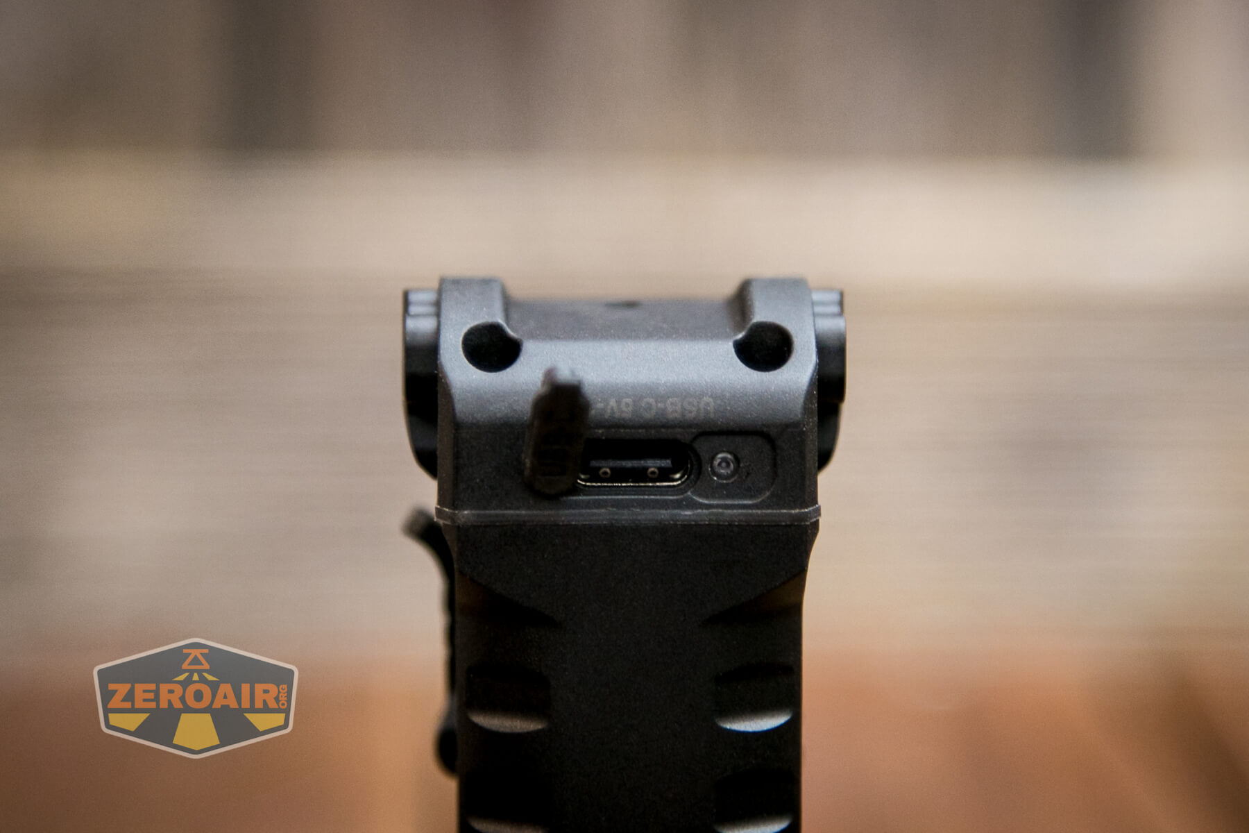 As stated above, when talking about swapping the cell, there’s built-in charging on the GL3. This is by way of a USB-C port on the underside of the light. This is notable because it means you can charge the GL3 while it’s still mounted to your weapon.